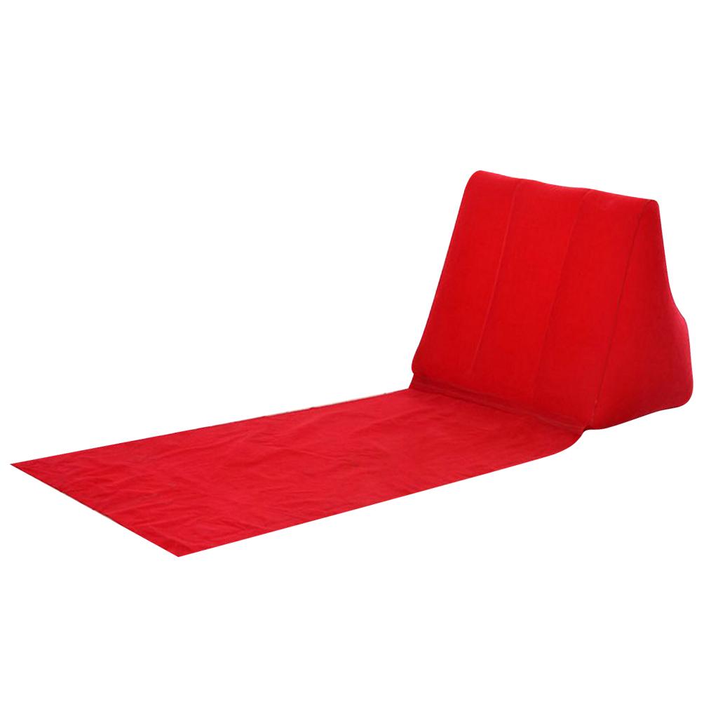 Inflating Beach Camping Lounger Back Pillow Cushion Chair Air Bed Red