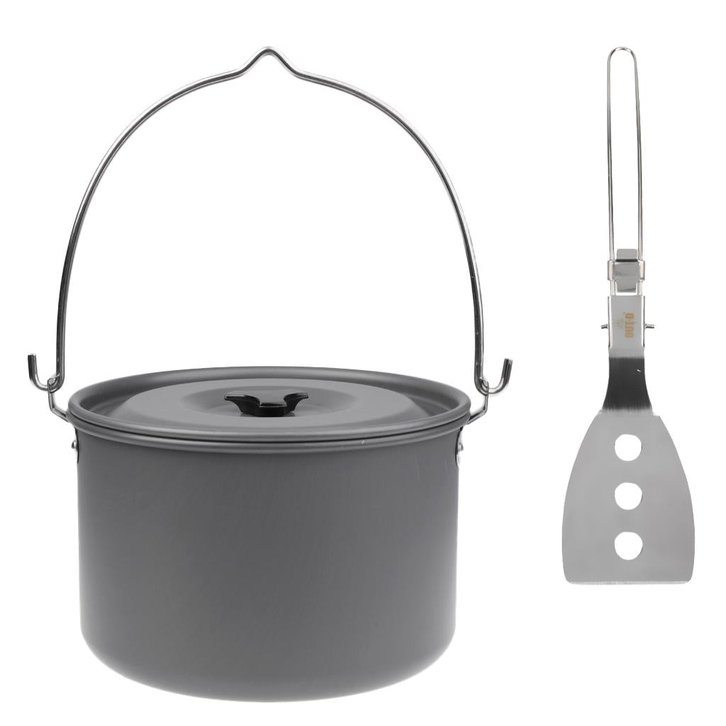 Large Outdoor Camping Hanging Pot Boil Water Cookware with Folding Spatula