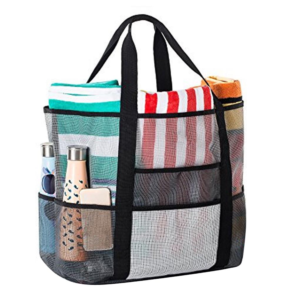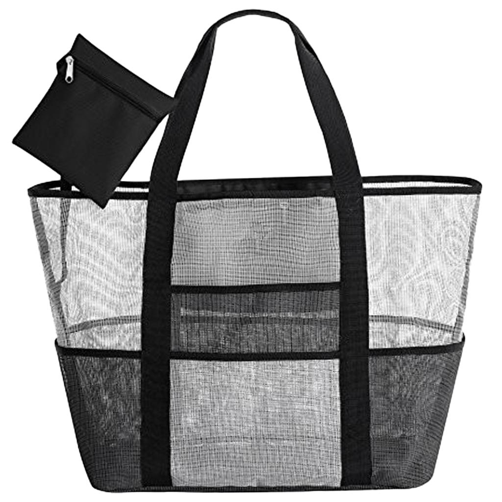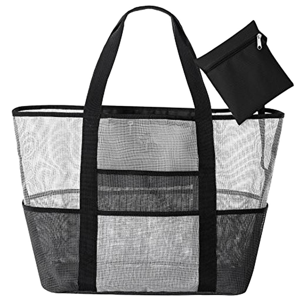 Mesh Beach Bag Lightweight Market Grocery Picnic Tote with Oversized Pockets