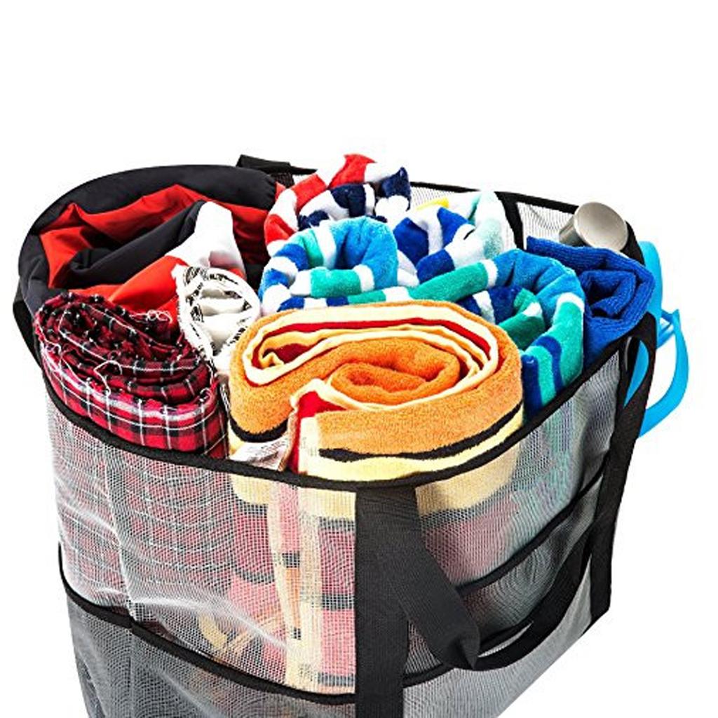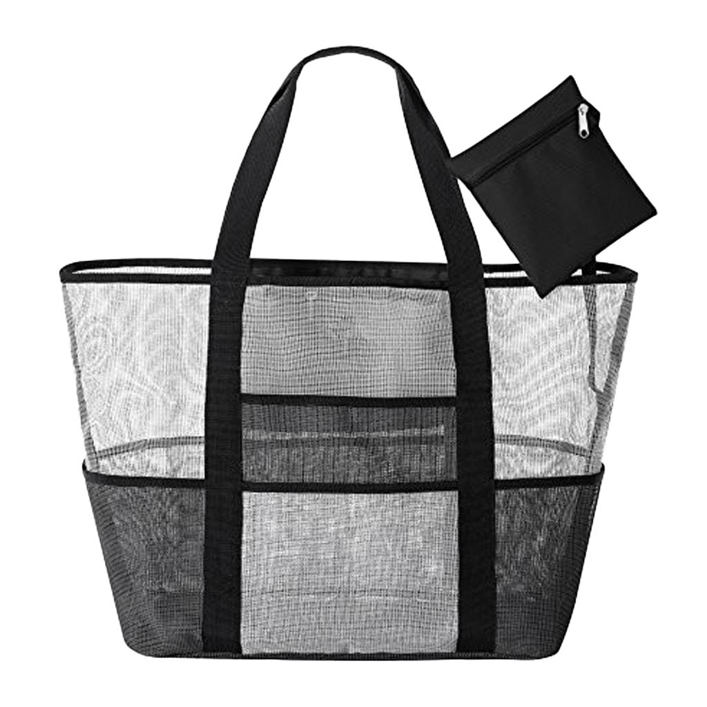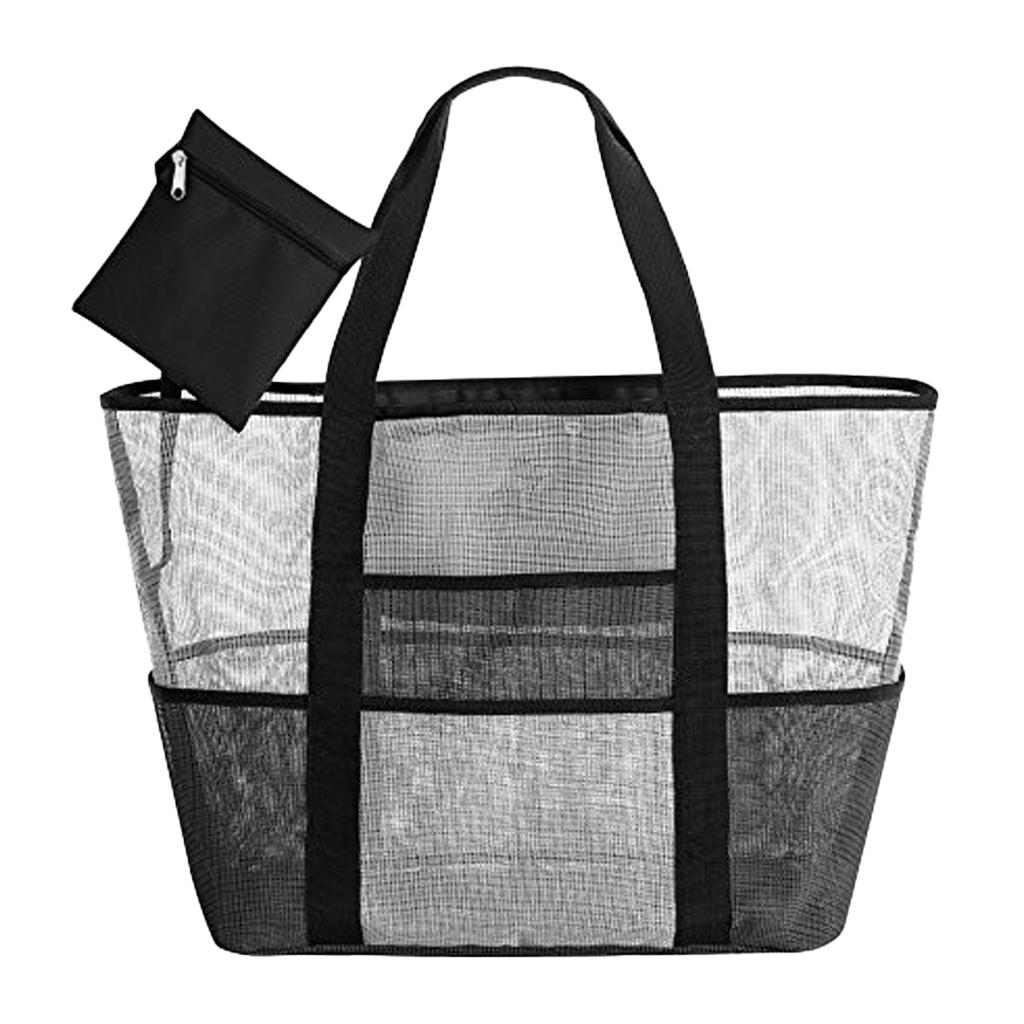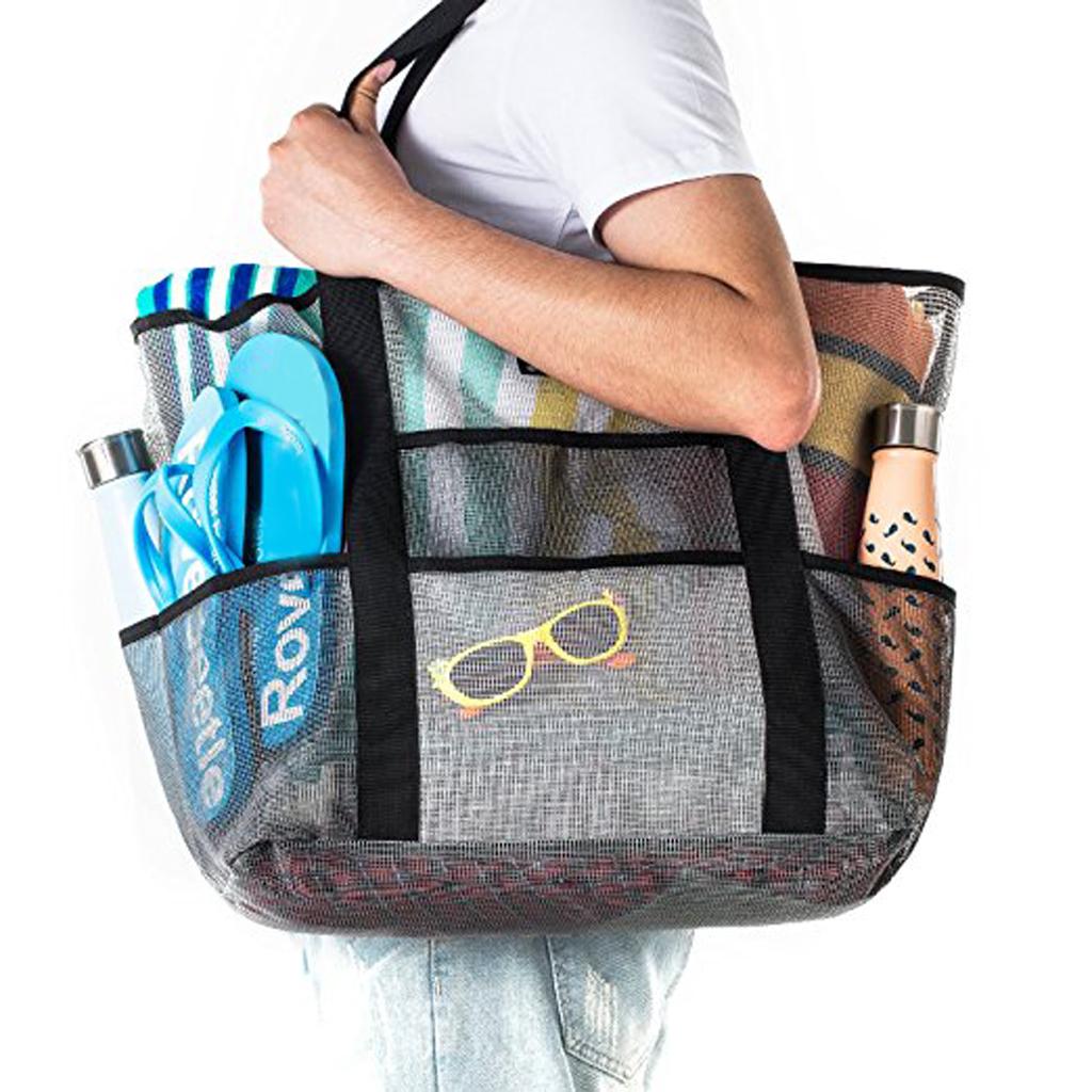 Mesh Beach Bag Lightweight Market Grocery Picnic Tote with Oversized Pockets