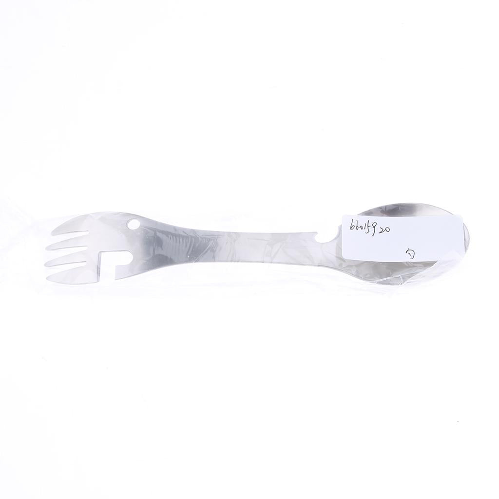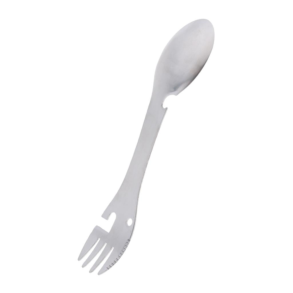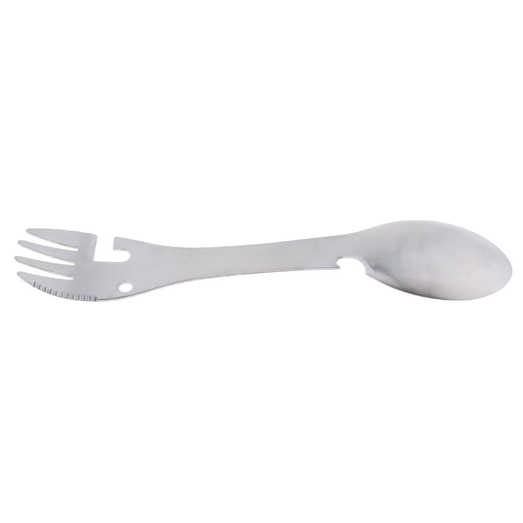 This multifunctional spork can be used as spoon, fork, can, bottle opener tool.