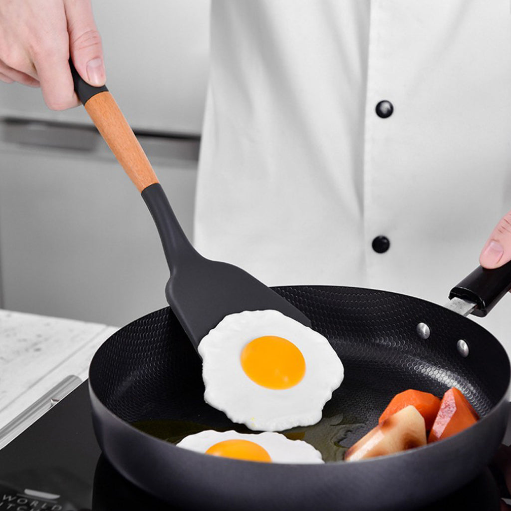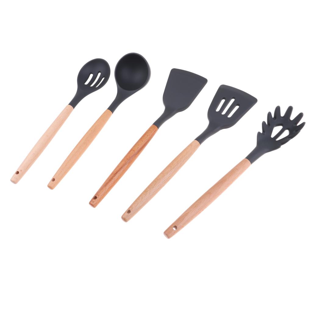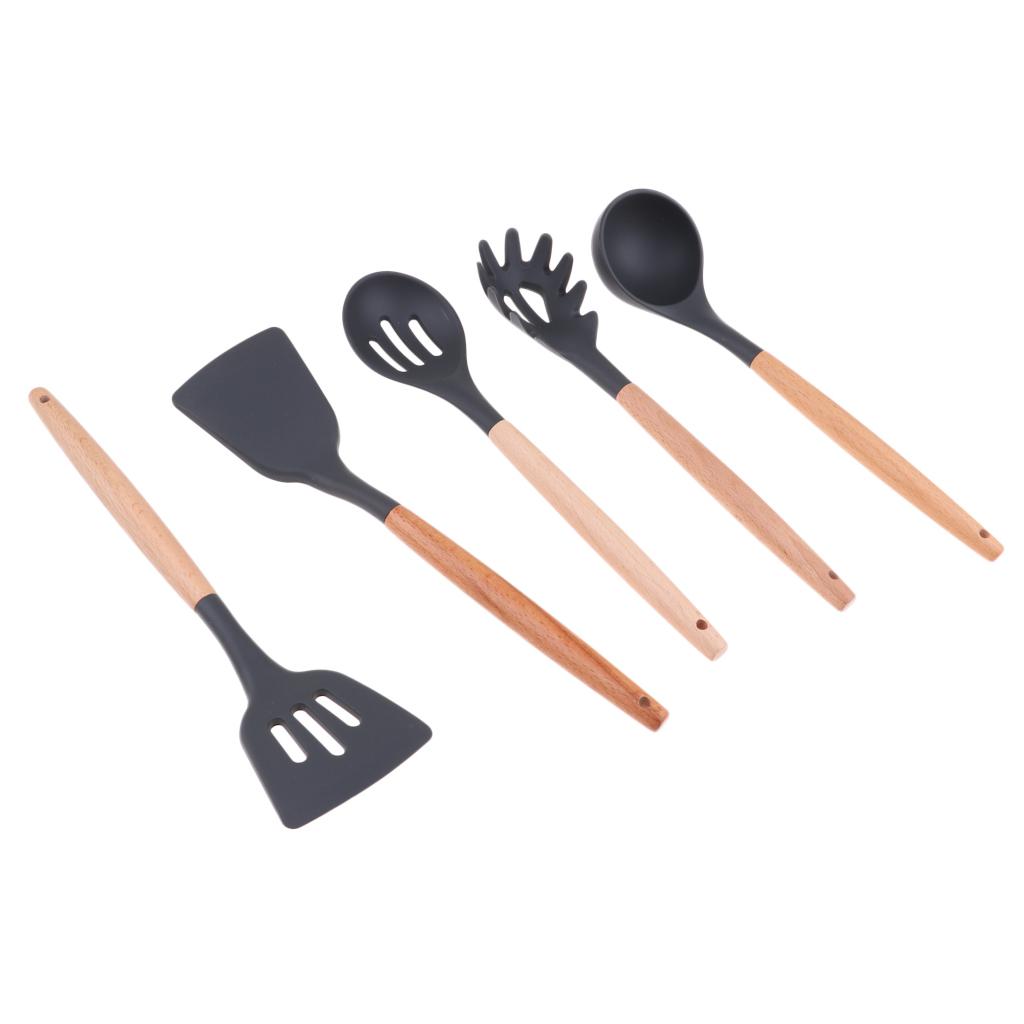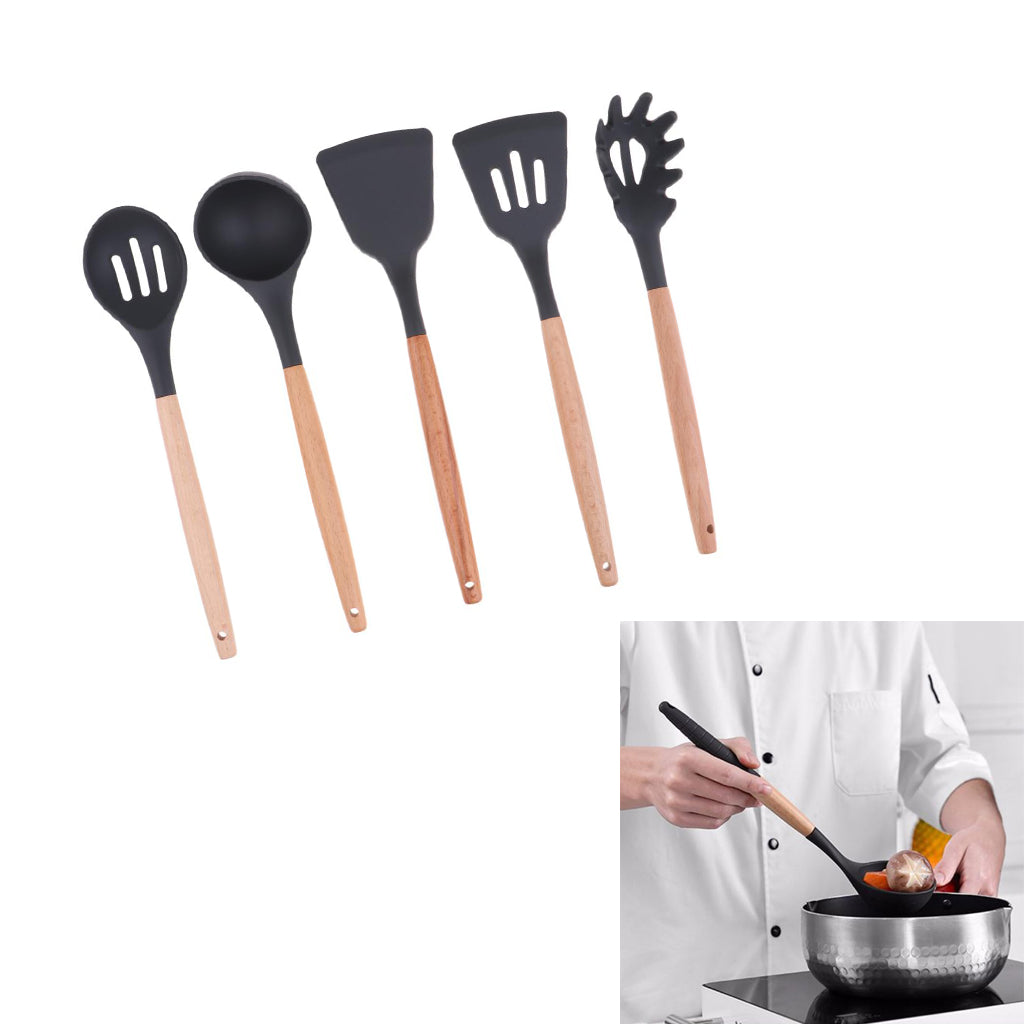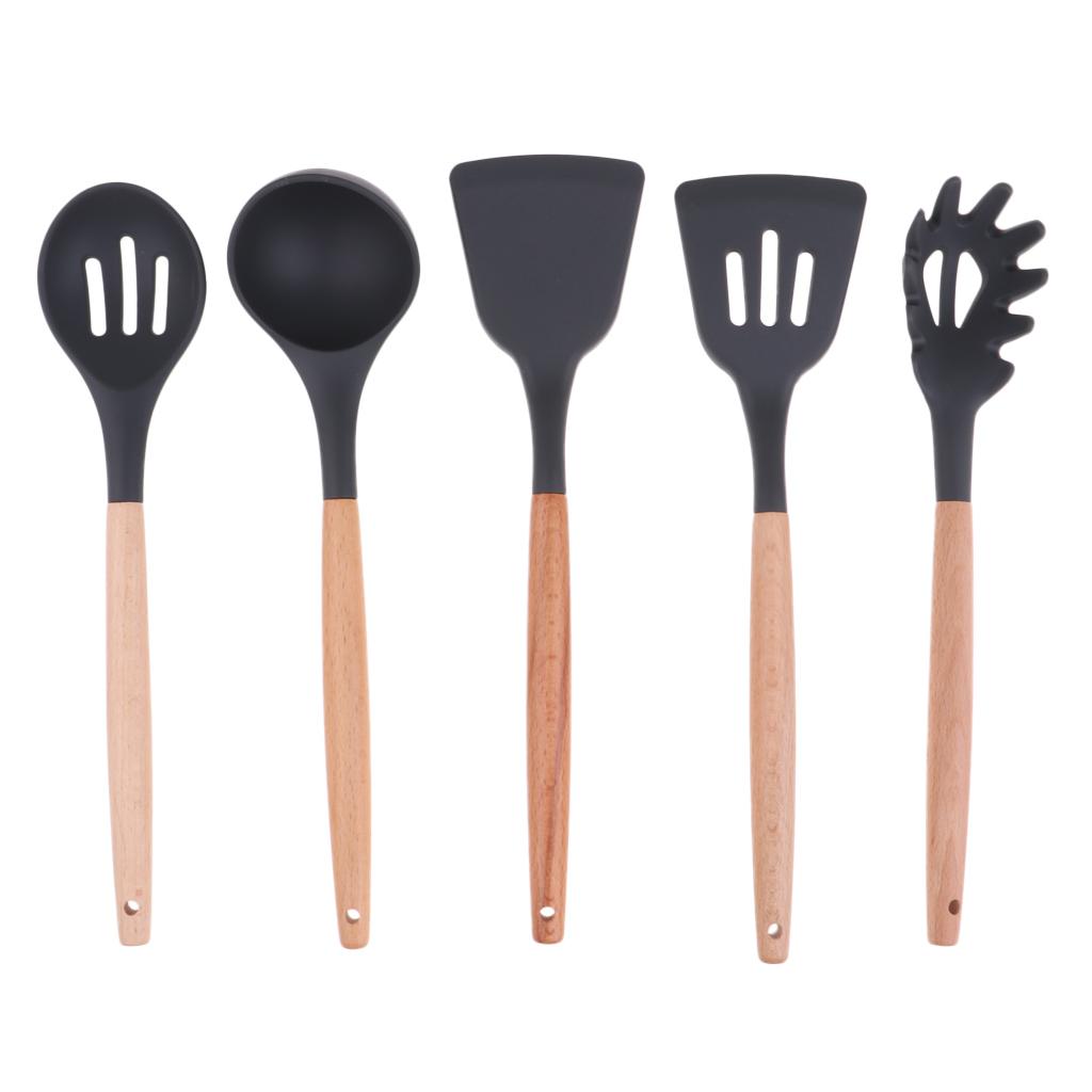 Cooking tool set is made of silicone with wood handle, BPA free, food grade, odor free