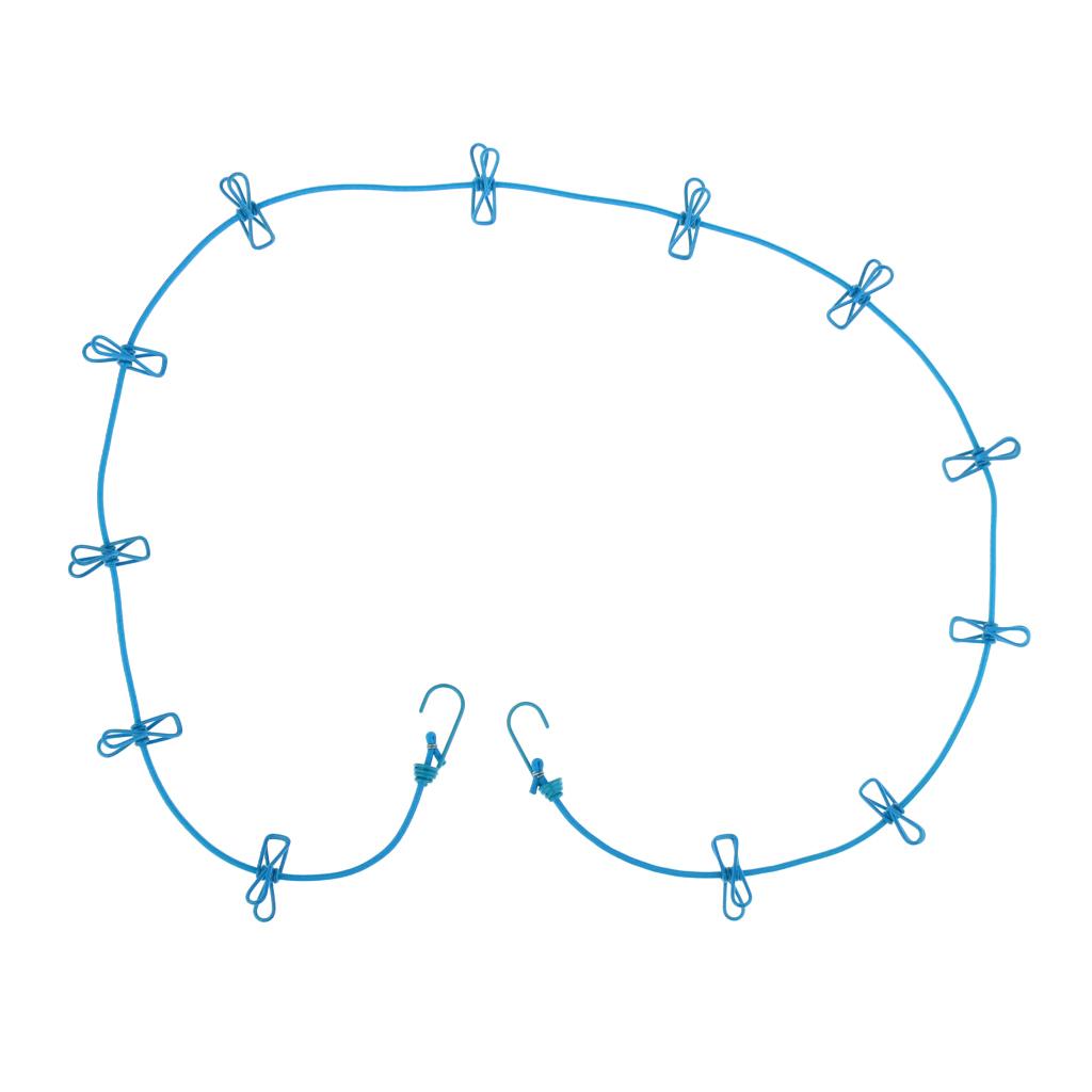 Outdoor Camping Tent Lamp Chain Clothesline with 12 Clamp Clips Hook Blue