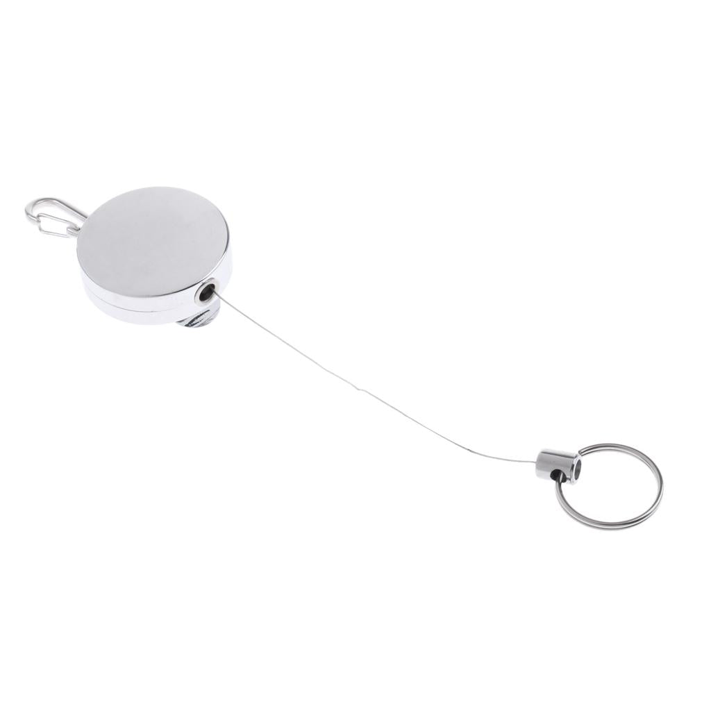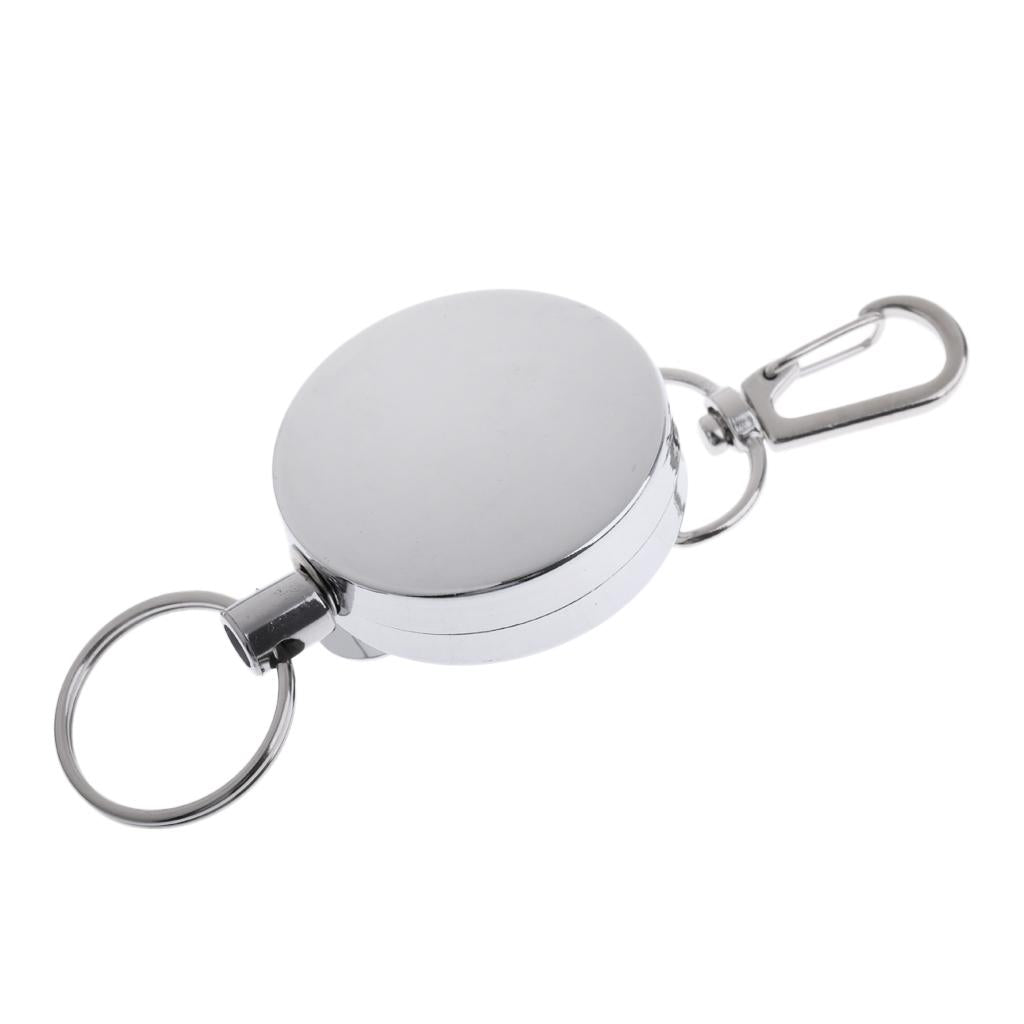 Retractable Key Chain Badge Holder Steel Recoil Ring Belt Clip 60cm Silver