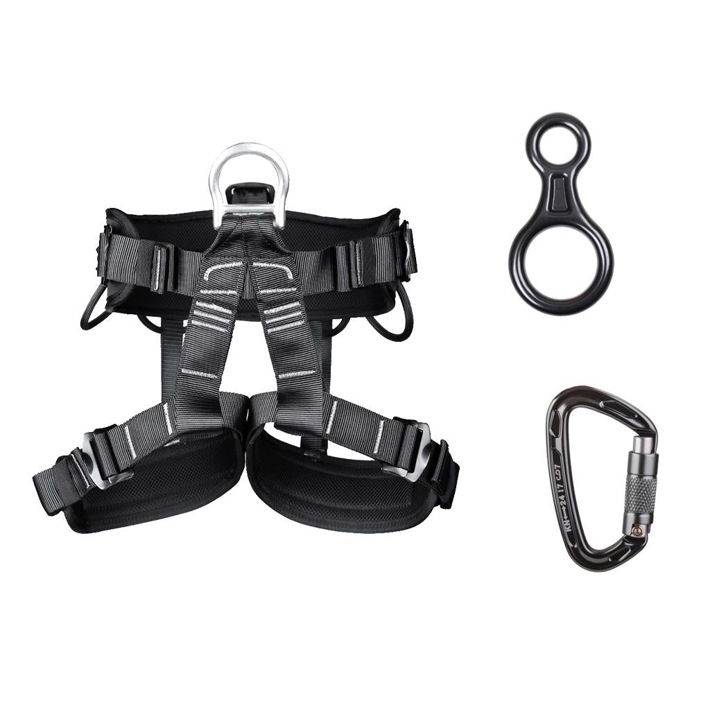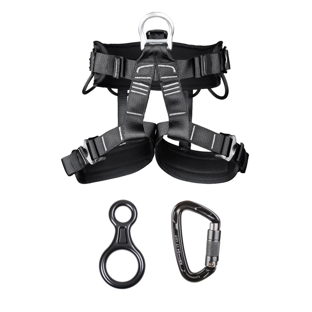Seat harness was designed for greater comfort while climbing, with carabiner and 8 rappel device