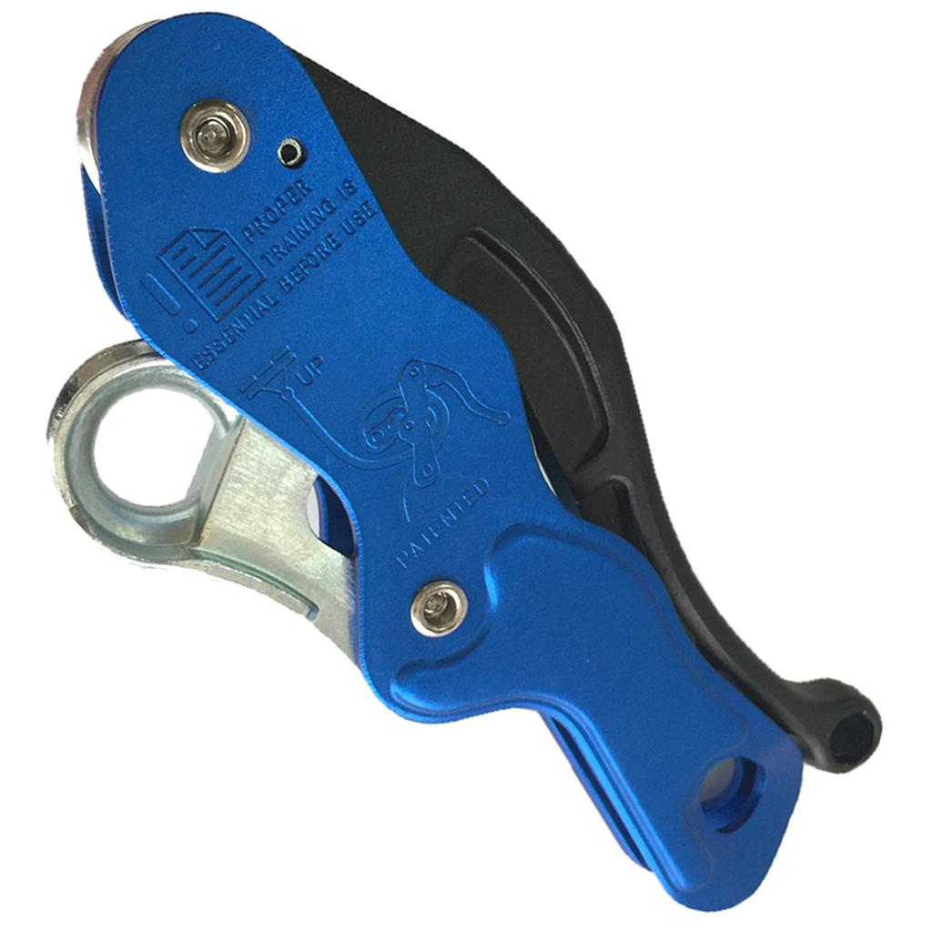 Can be rapidly installed or removed from the rope without disconnecting it from the harness