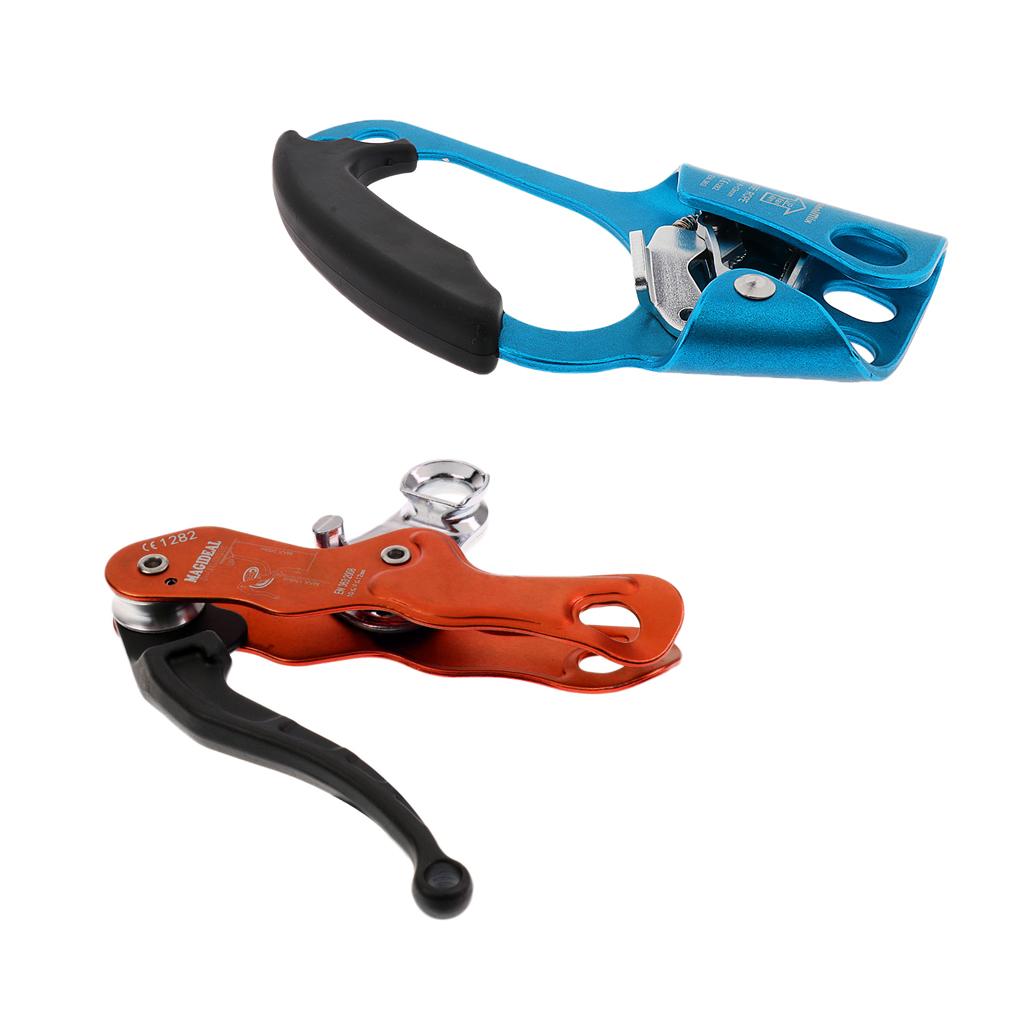 Self Braking Double Stop Descender Belay Device + Right Hand Ascender Riser