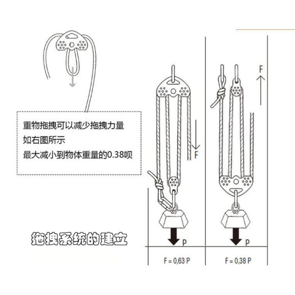 Suitable for back yard zip line setting, mountaineering, rock climbing, rescue, descending, lifting, etc.