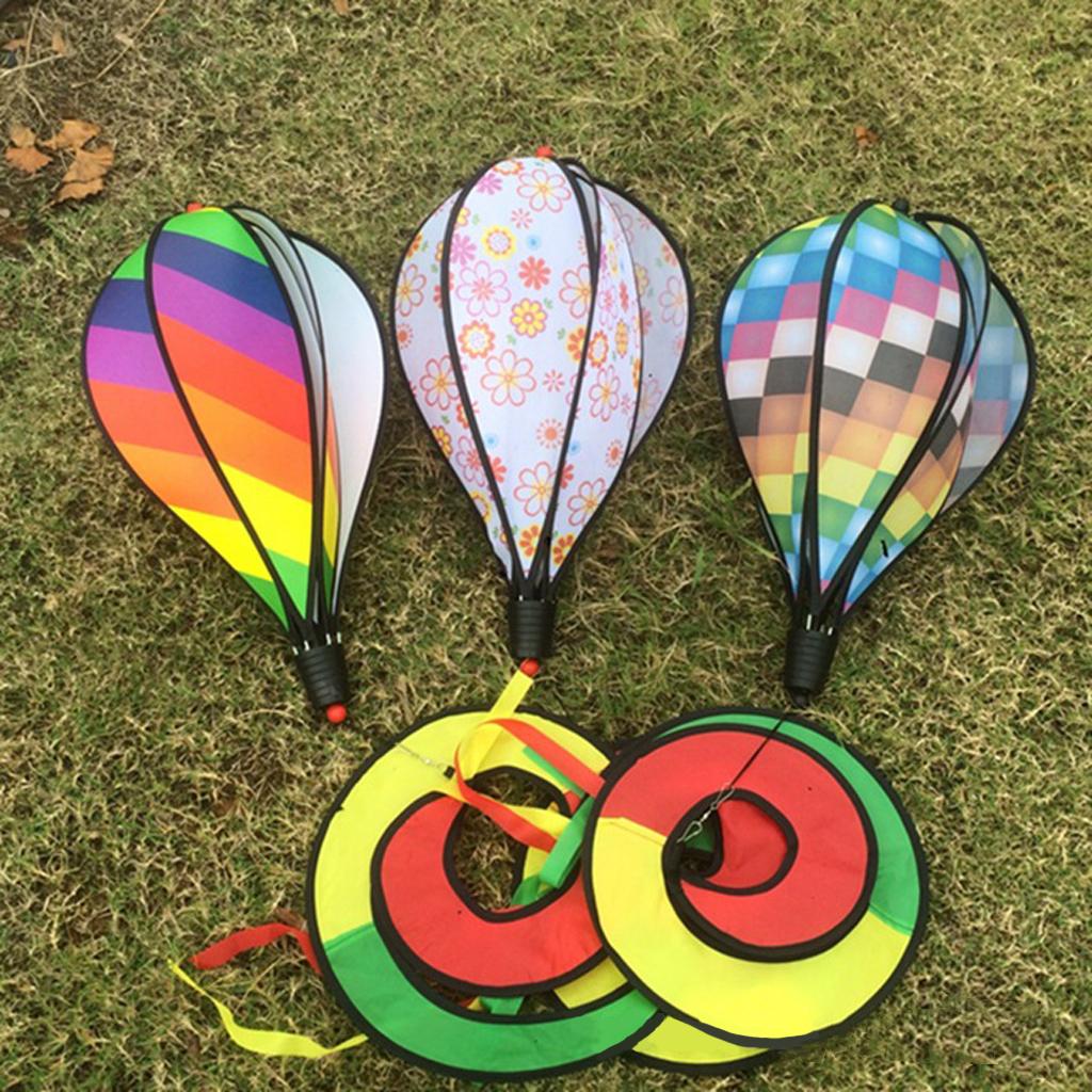 3 pieces Brightly colored hot air balloon windsocks with six panels and a flowing curly tail