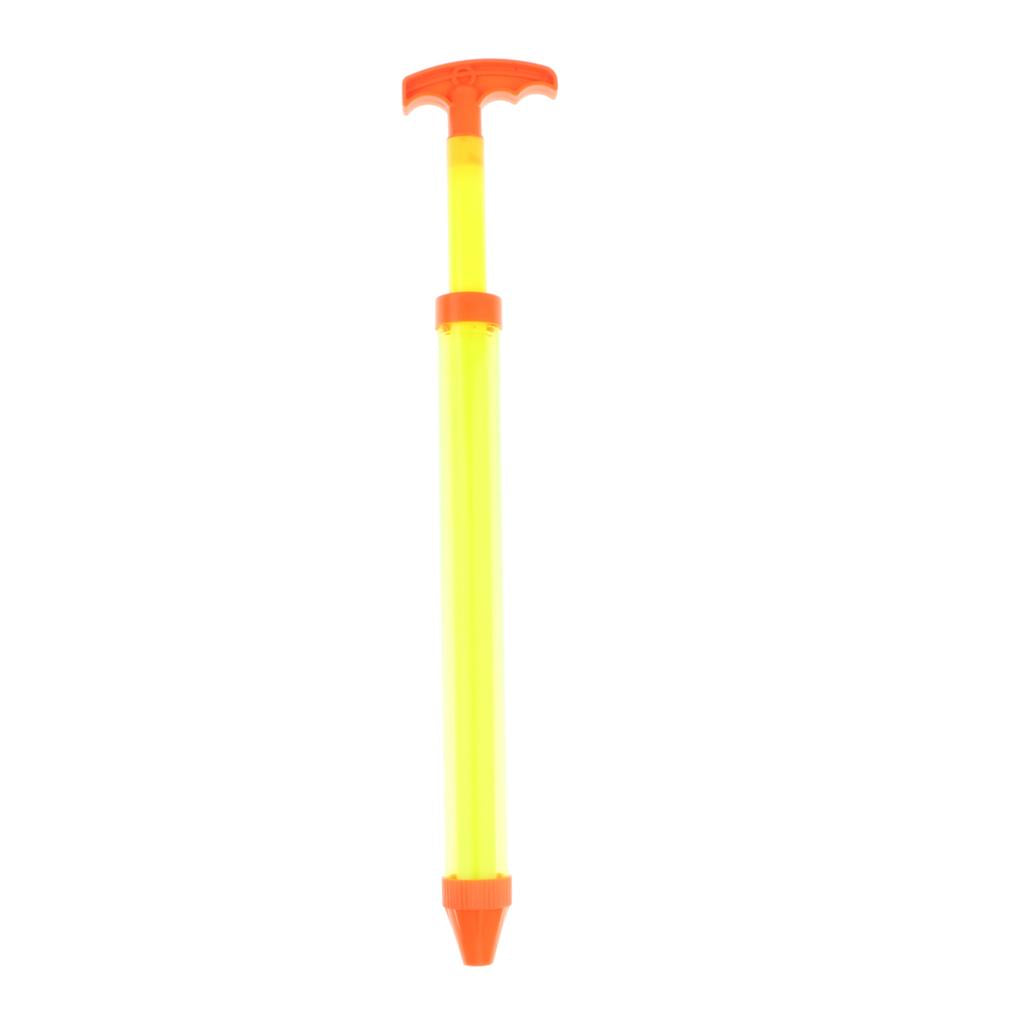 When placed underwater, pull the top handle to fill with water, and shoot water when pushed