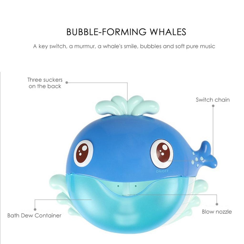 Automatic cartoon whale bubble making machine with 12 music, kids bathing, shower toy