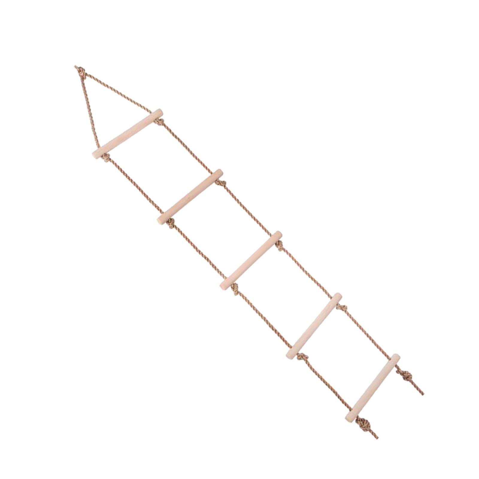 This 5 rungs rope climbing ladder with wooden struts and metal hook ring is good for outdoor play fun