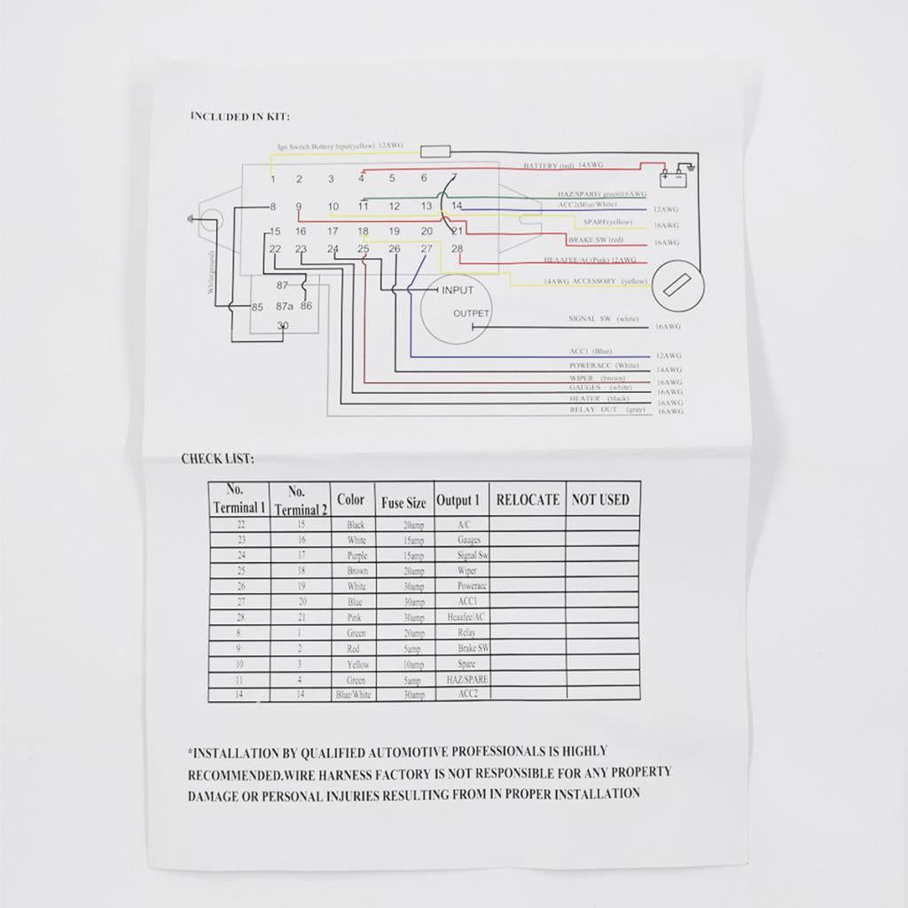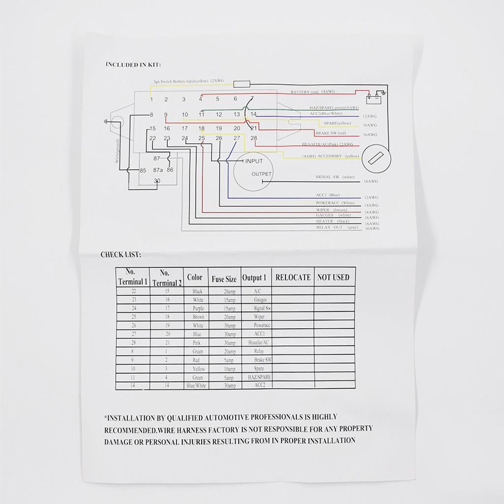 kit has circuits for A / C, Ignition / Battery, Gauges, Brake Switch,