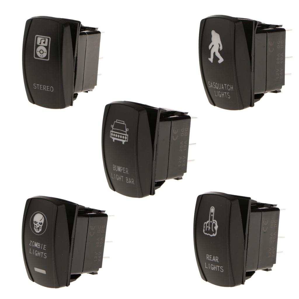 12V/24V Car Boat ON/OFF Bumper Light Bar Rocker Toggle Switch 5 pin -White