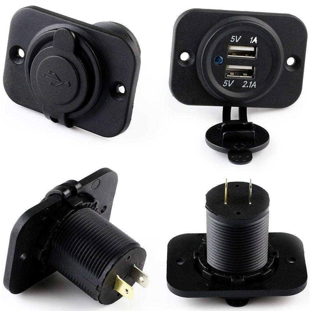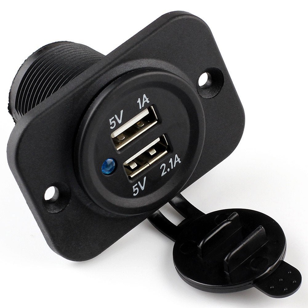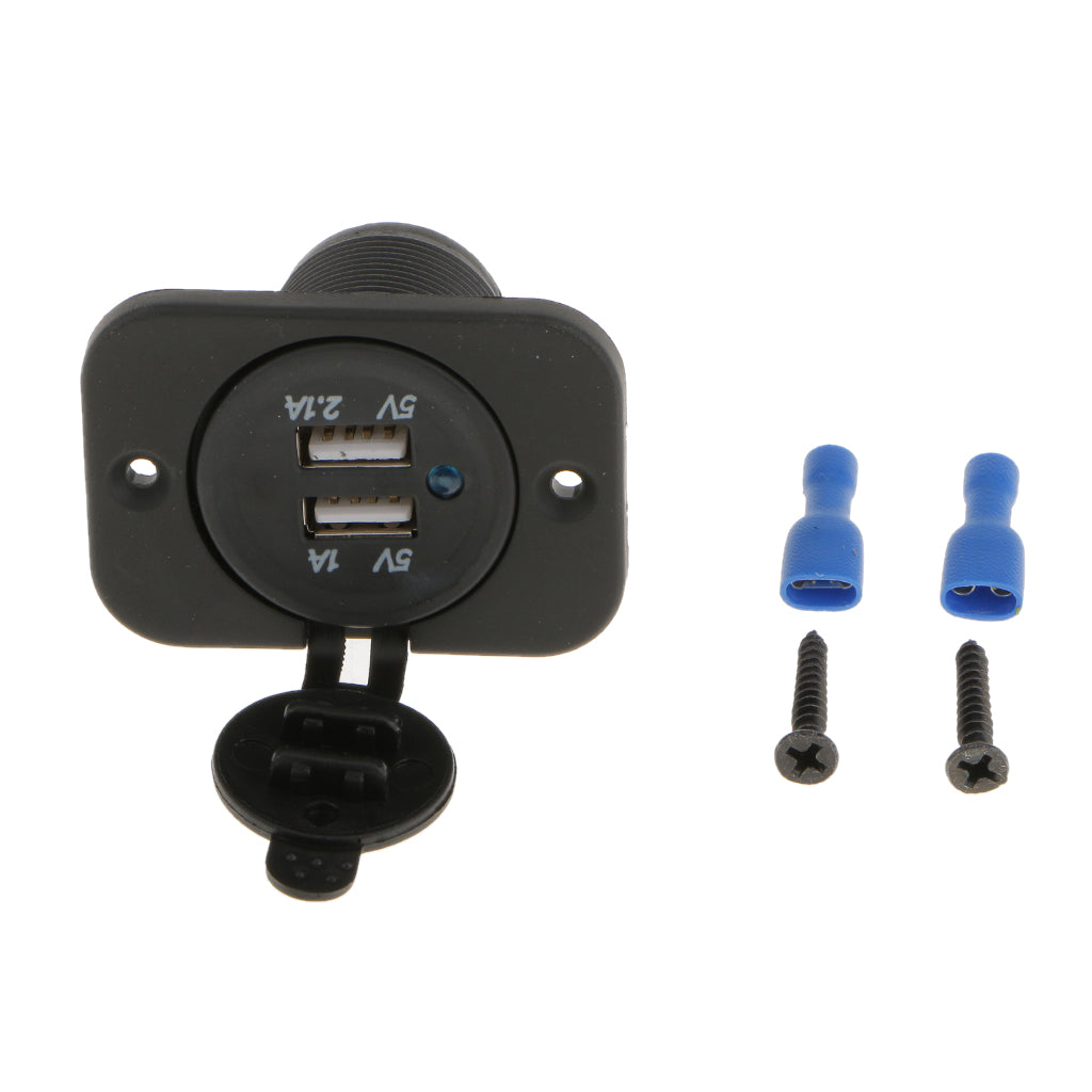 1A/2.1A Charger Port Socket for Car Boat Motorcycle 12v Dual 2 USB Outlet