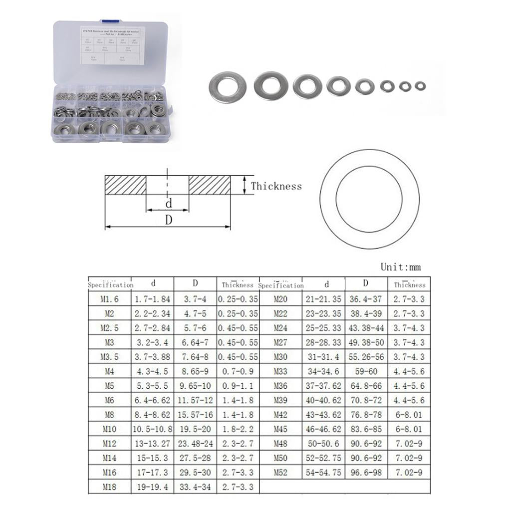 275 boxed flat gaskets M2-16M round stainless steel gaskets with 10 specifications
