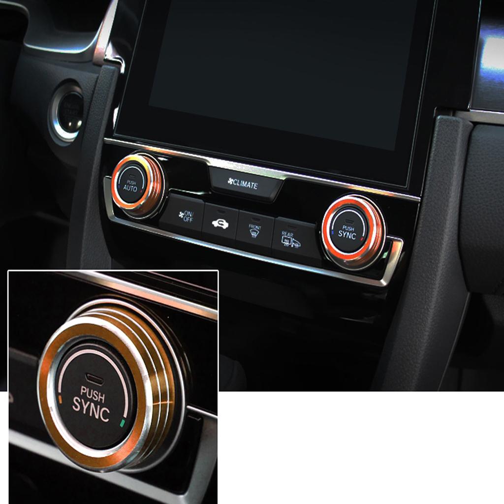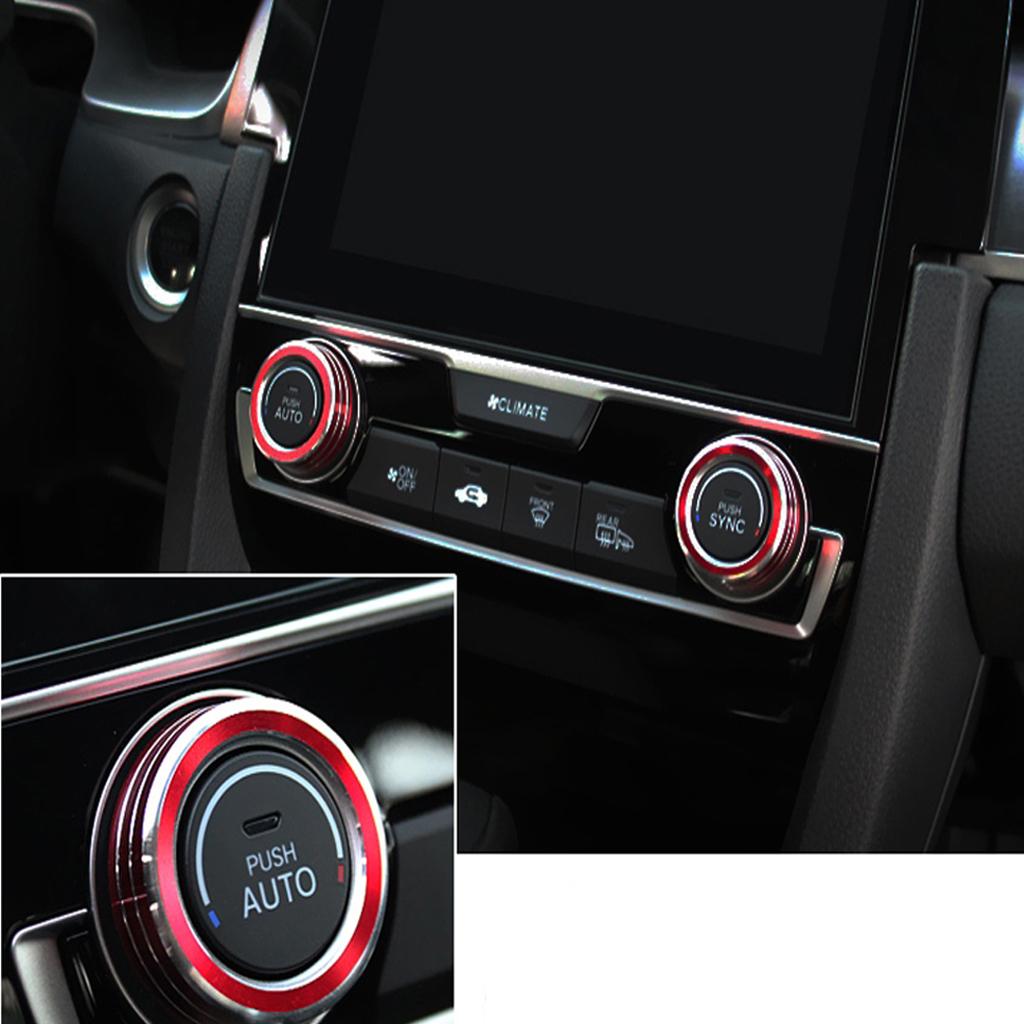 2pcs Car Air Conditioning Knob Ring Covers For Honda Civic 2016-2018 Red
