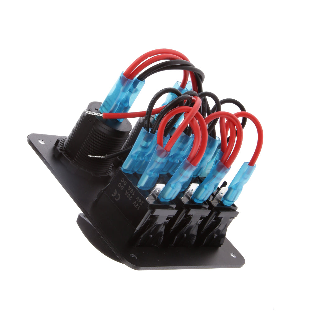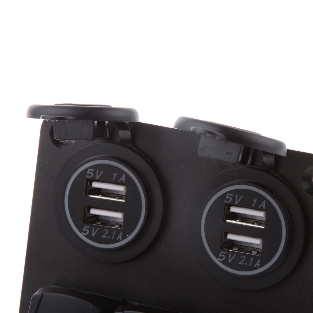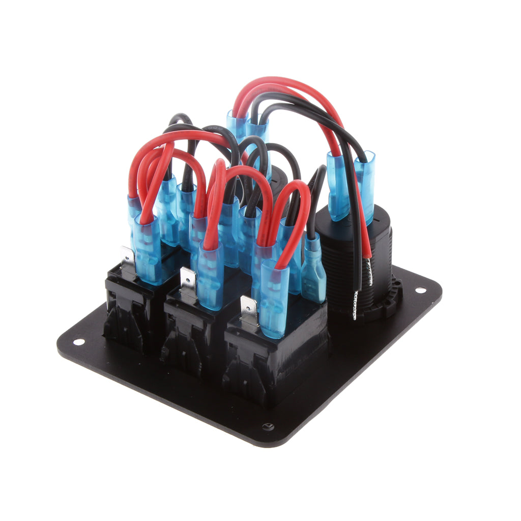 3 Gang Rocker Switch Panel Breaker Blue LED Car Marine Boat Circuit Waterproof 4 USB Charger Port