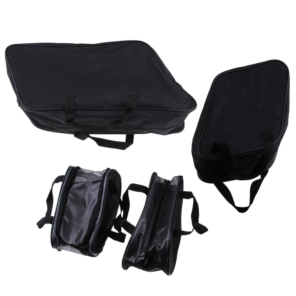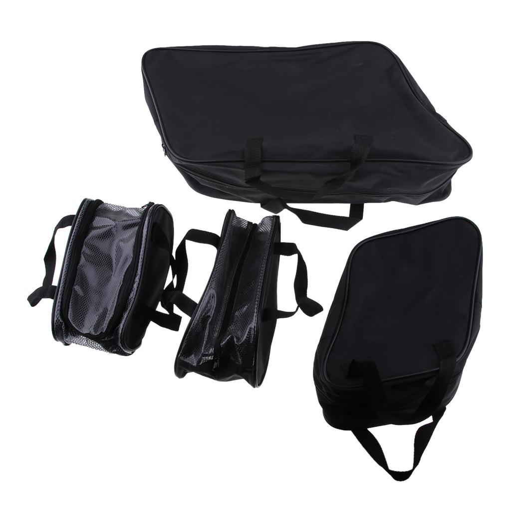 Four-piece liner set includes one full-size liner bag matched perfectly to the shape of FLHT-style hard saddlebag .