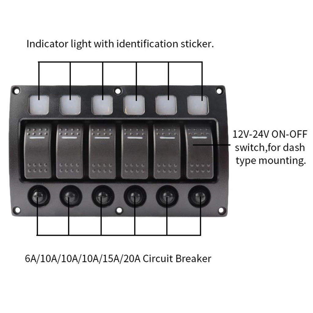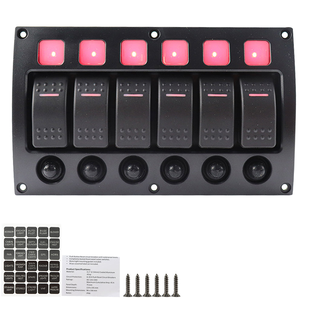6P Curved Water-resistant LED Switch Panel with Circuit Breakers Backlight modules for label stickers