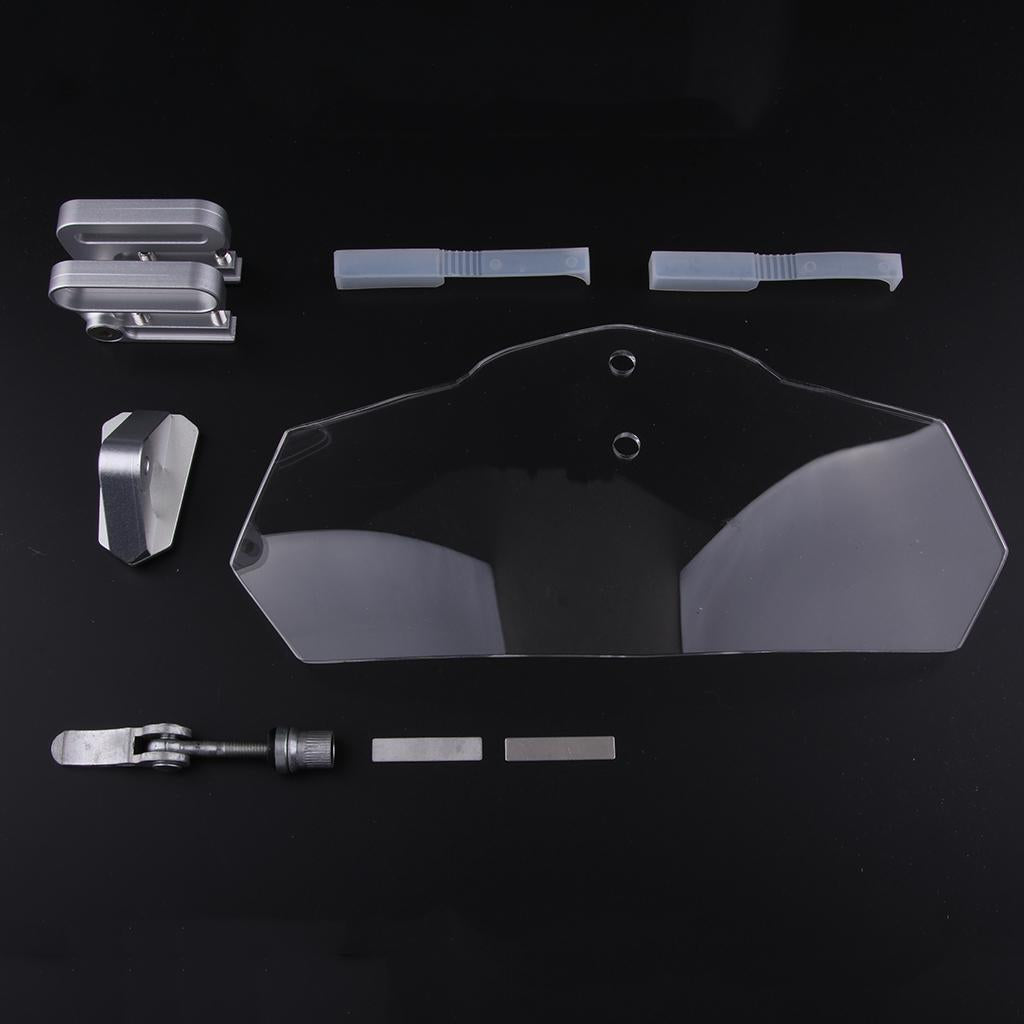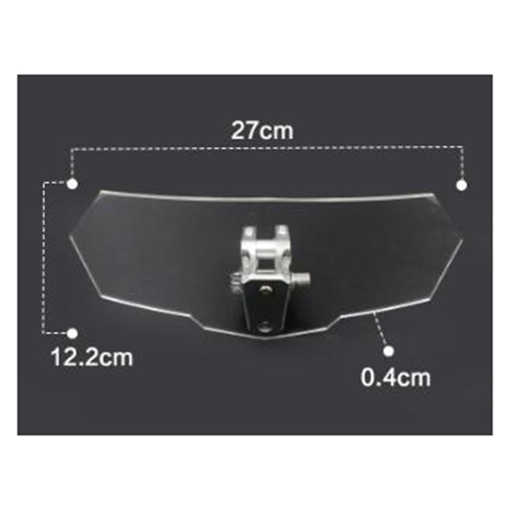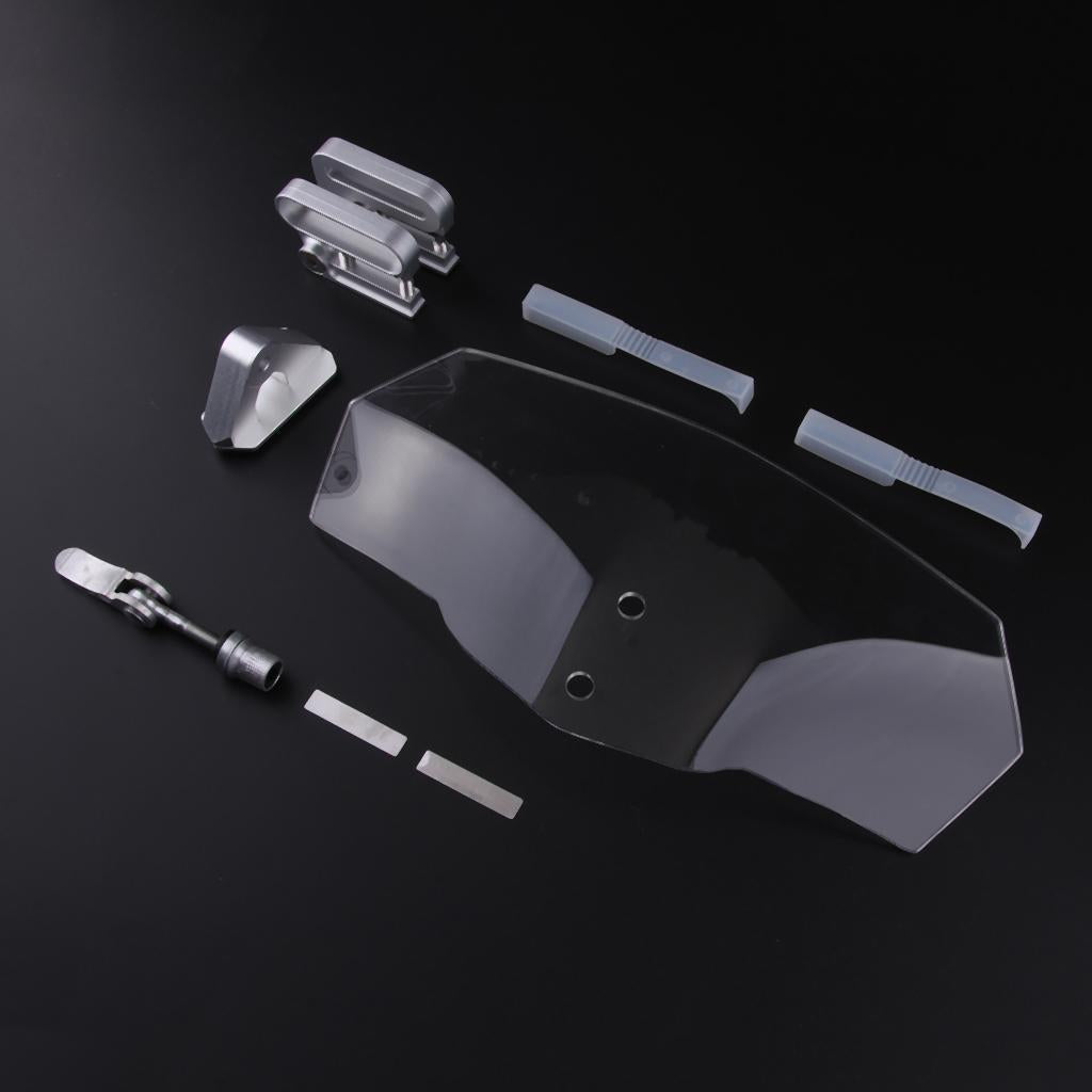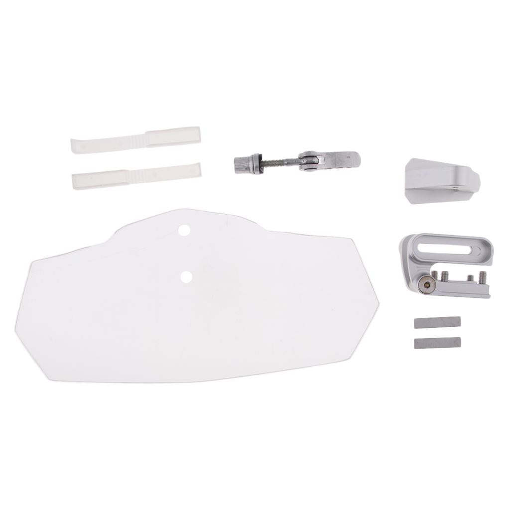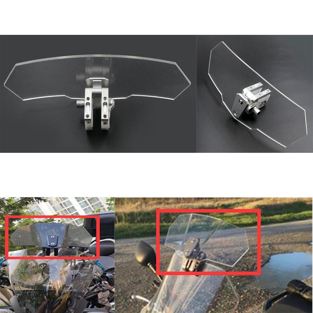 Adjustable motorcycle windshield, fixed on the top of original windshield, heightening for better head protection for riders.