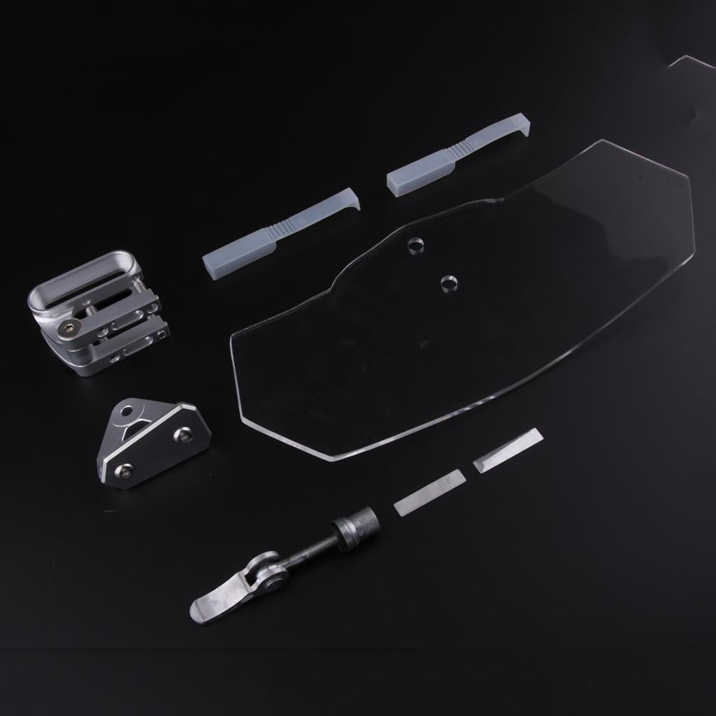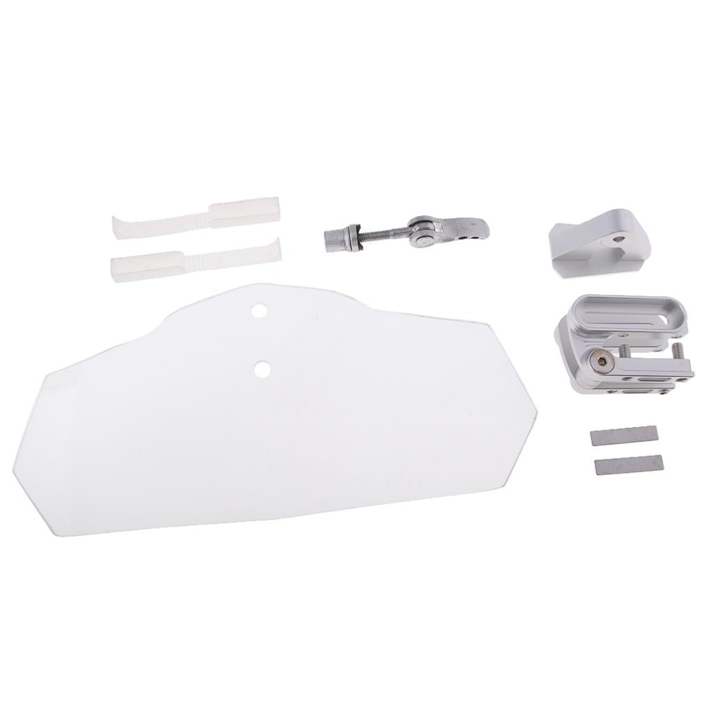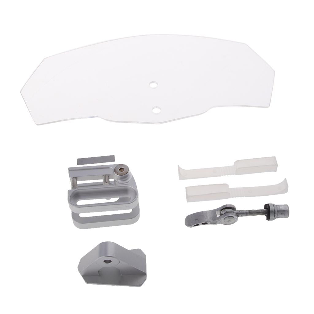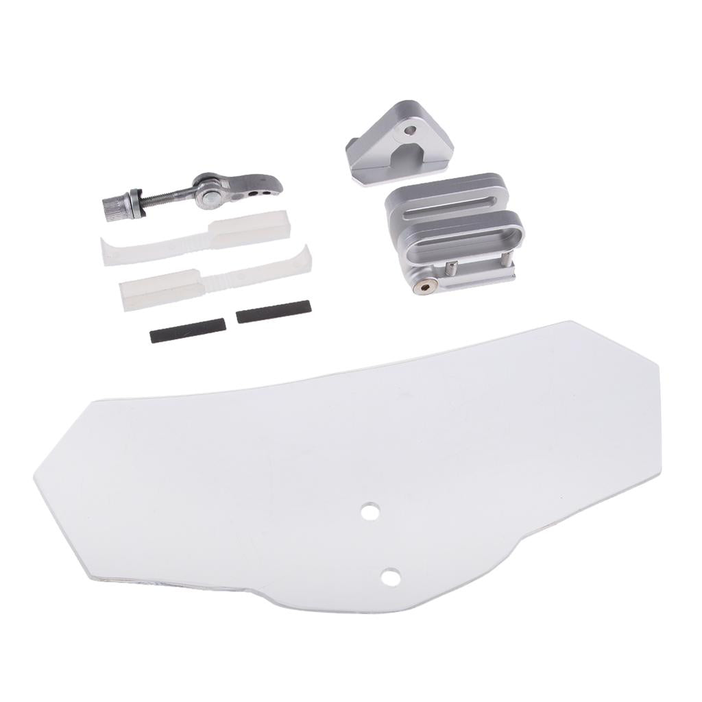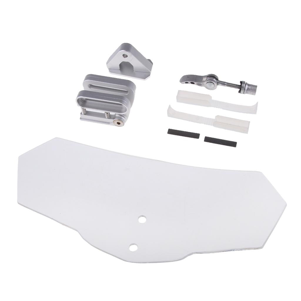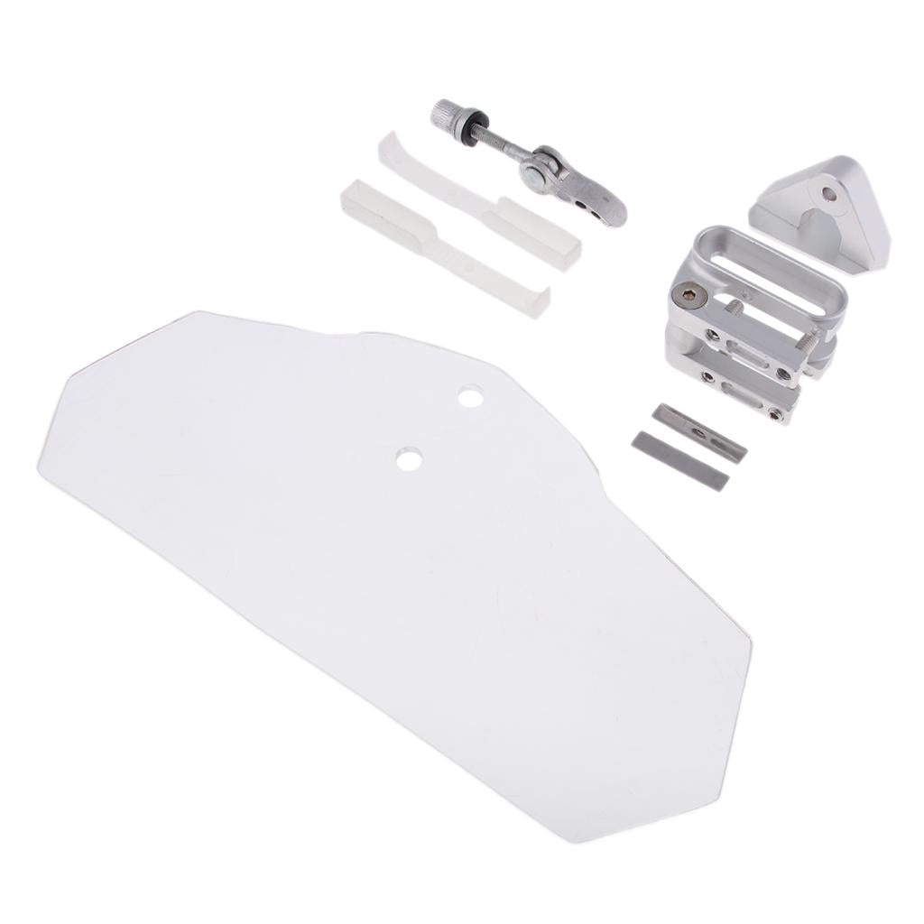 Adjustable motorcycle windshield, fixed on the top of original windshield, heightening for better head protection for riders.