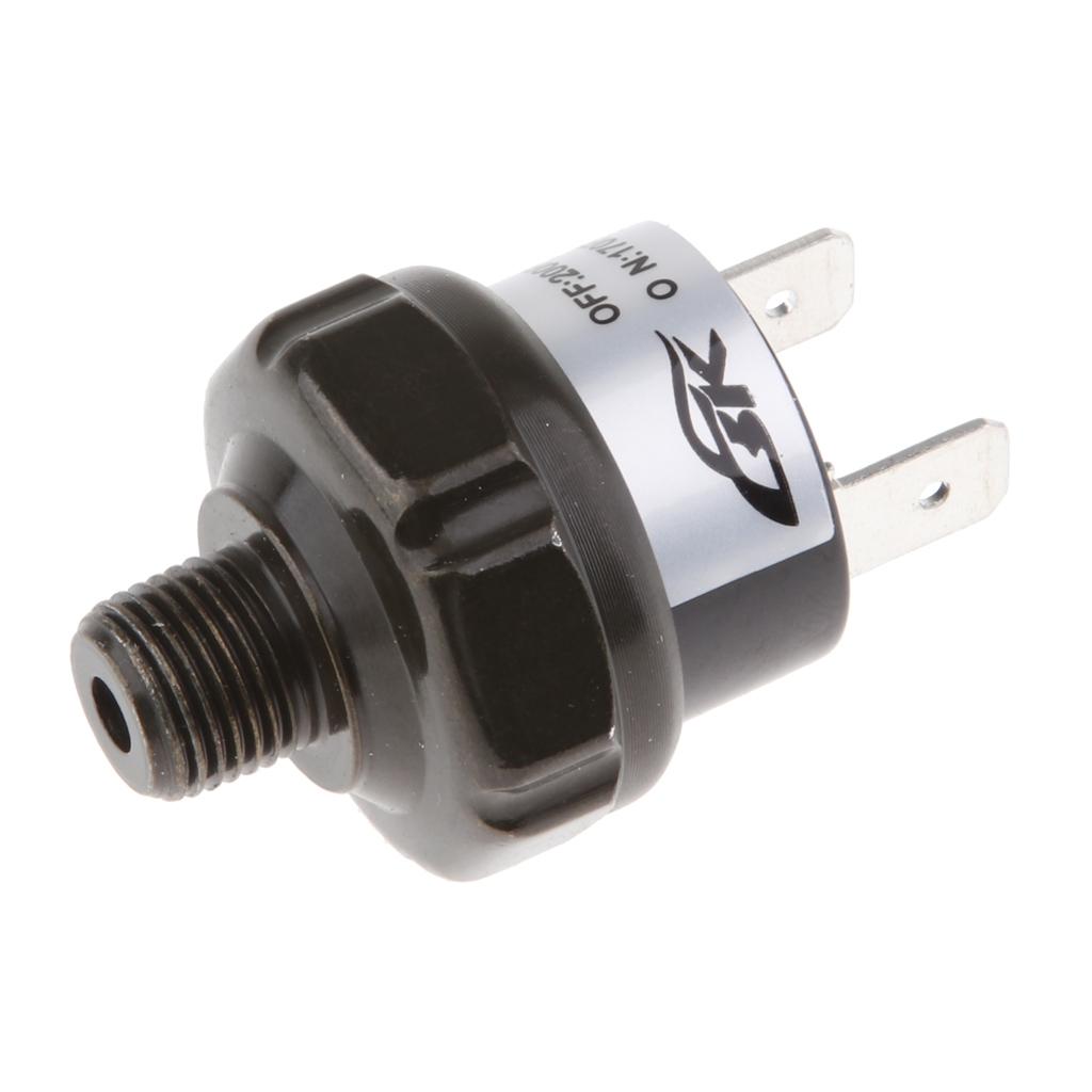 With 1/8inch male pipe thread,and 1/4inch push-on electric terminals.
