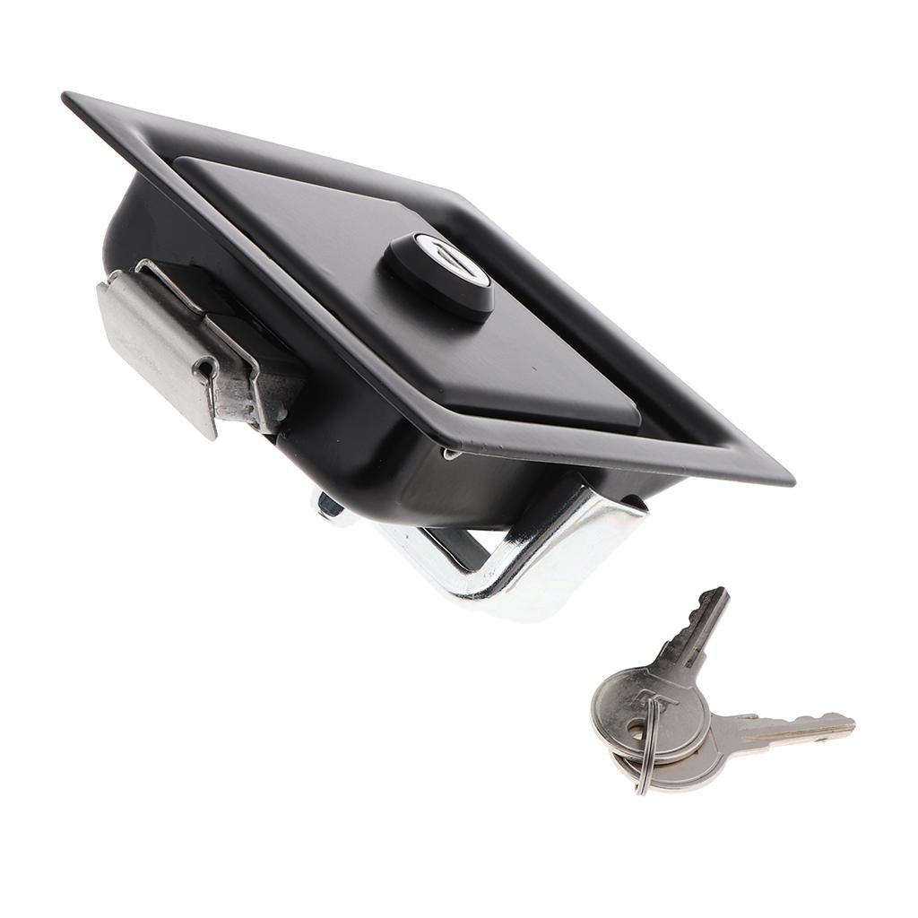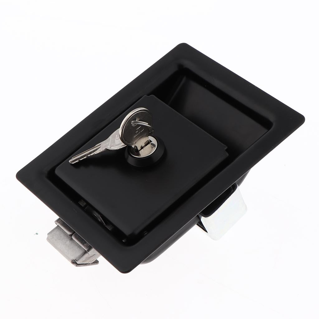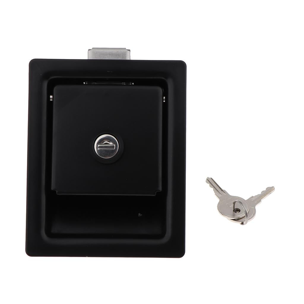 Black Flush Latch,1Piece Alloy Paddle Door Lock Handle Truck Box Trailer Latch With 2 Keys