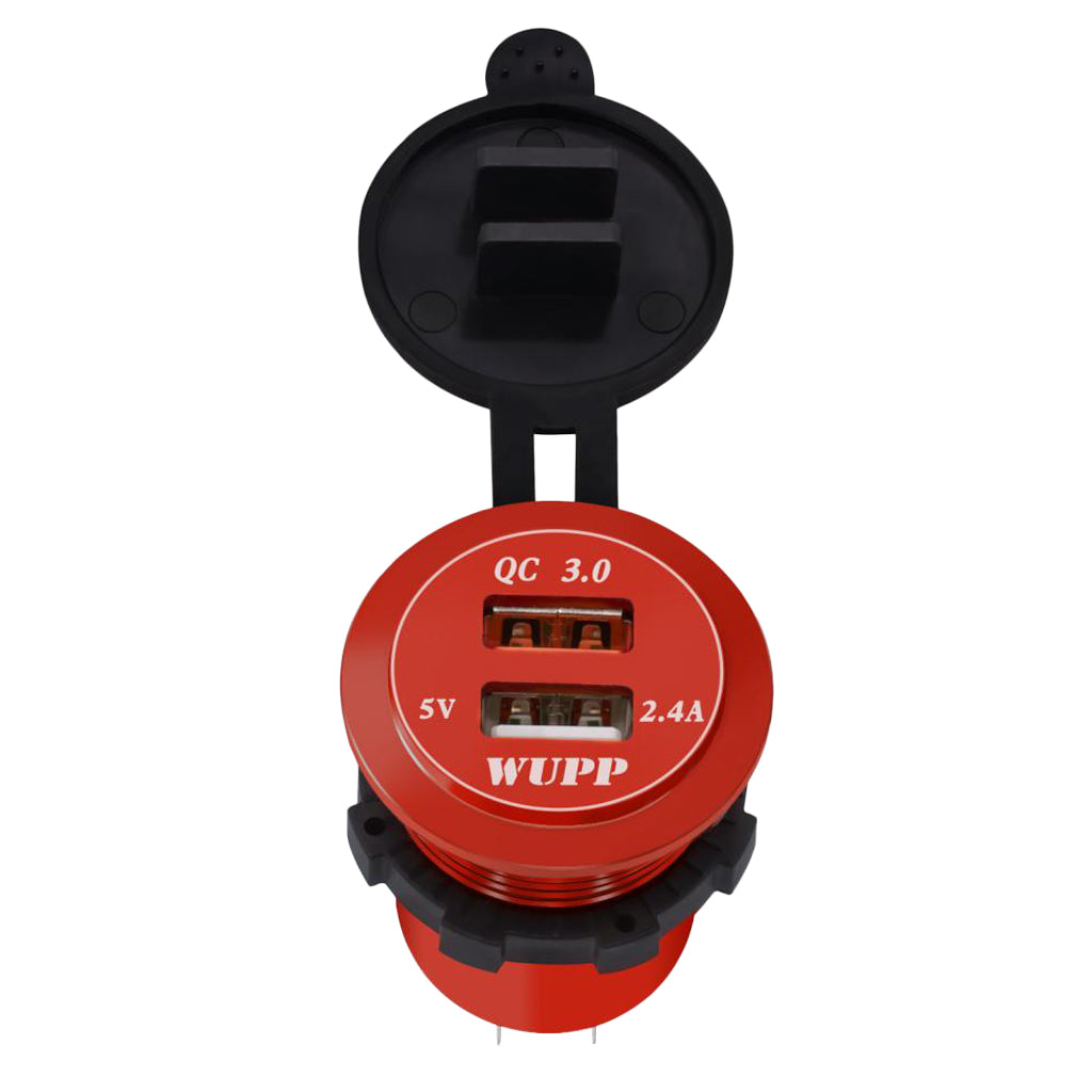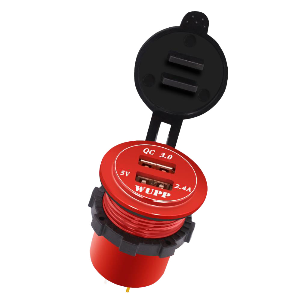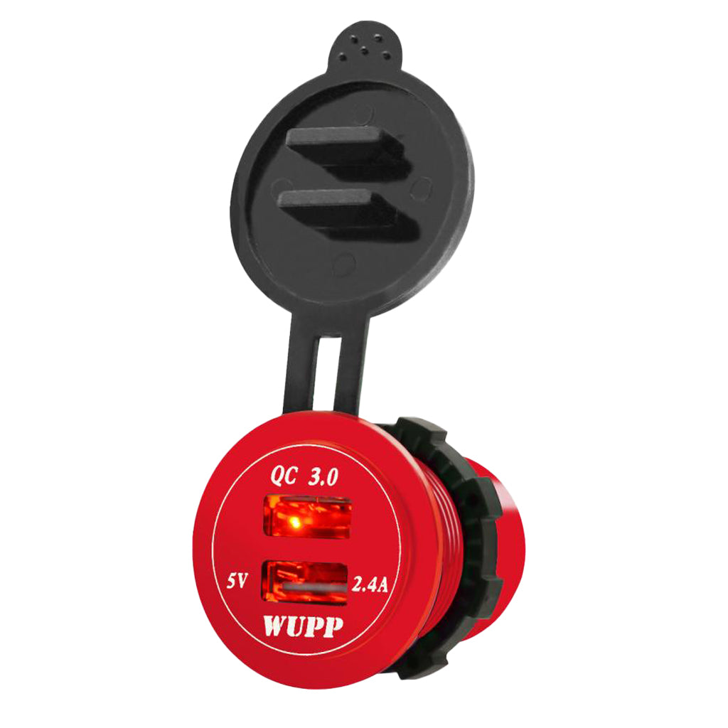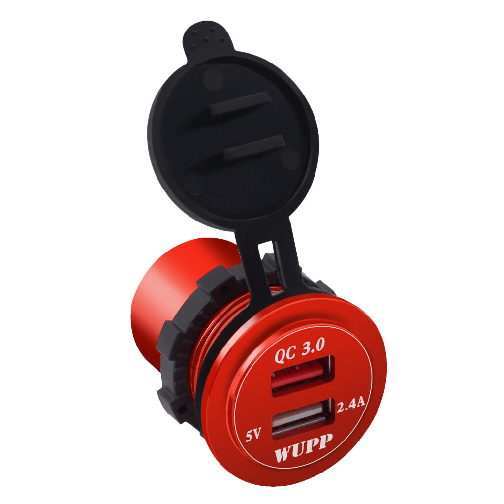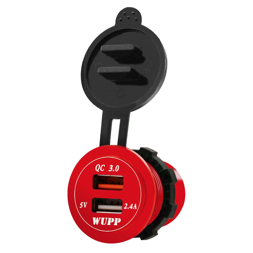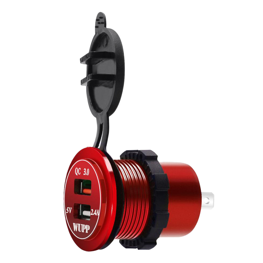 The main car charger is equipped with 5V, 2.4A ports, and an extended charger with Quick Charge 3.0.