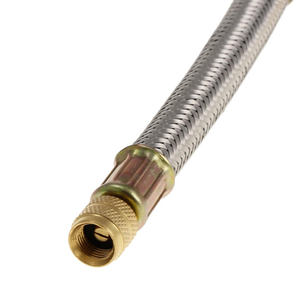 Made of copper nut and 304 stainless steel braided flexible hose with an Iron alloy clip to fix the adapter.