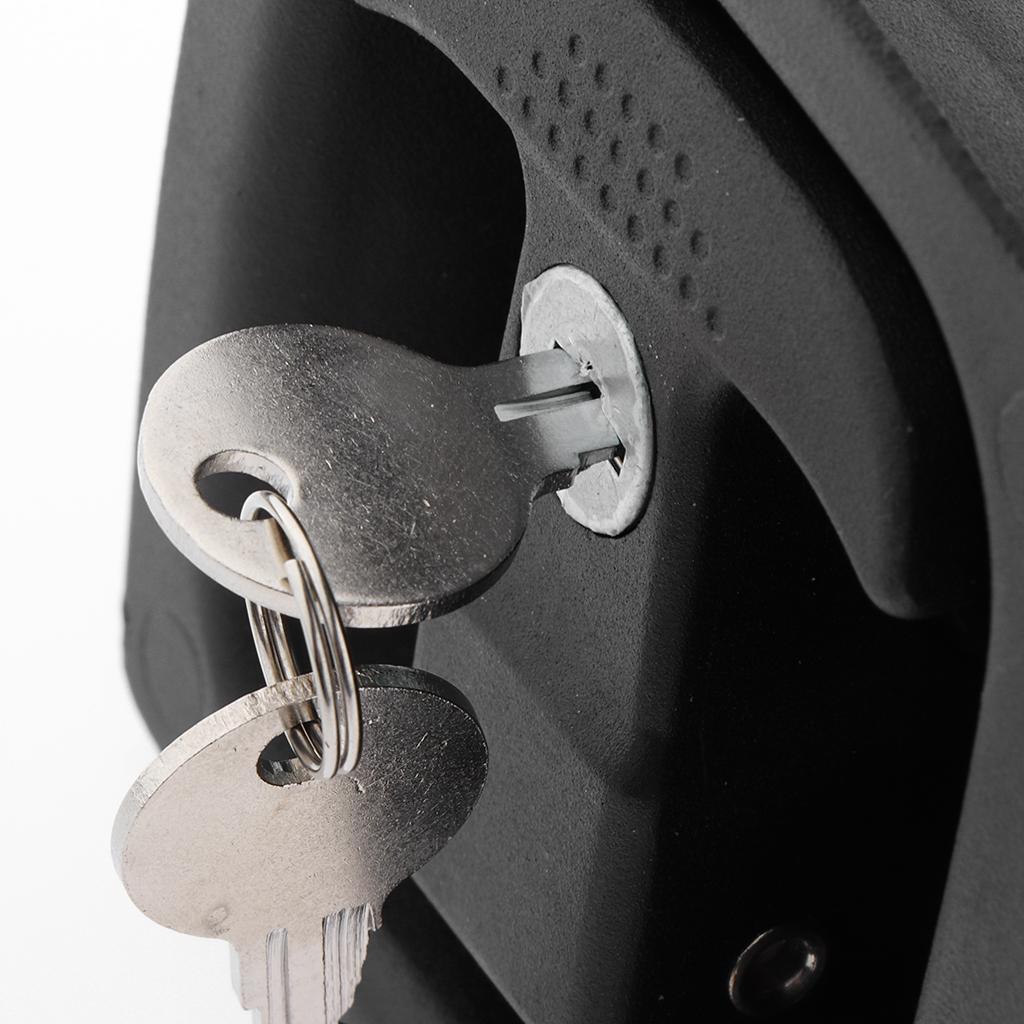 Made of strong, rust and weather resistant steel and zinc alloy with black coating.