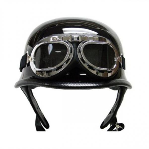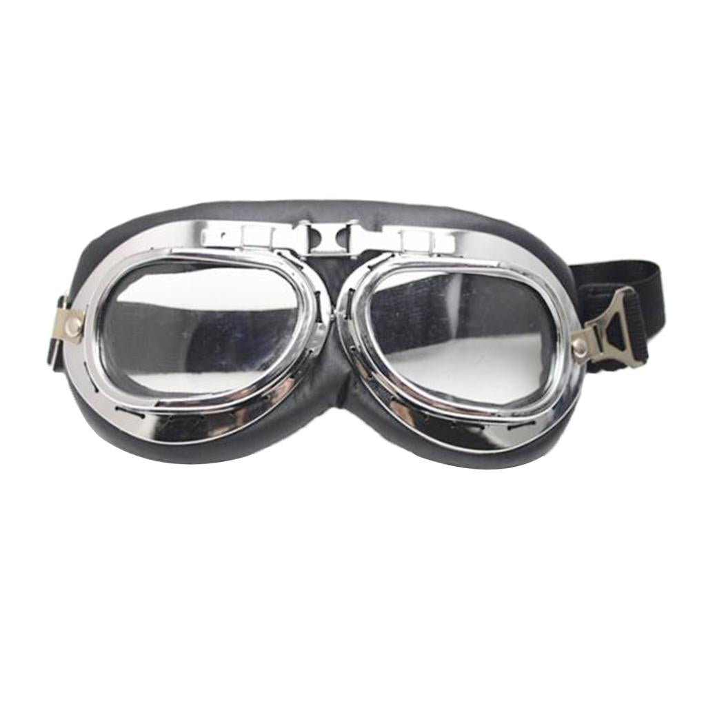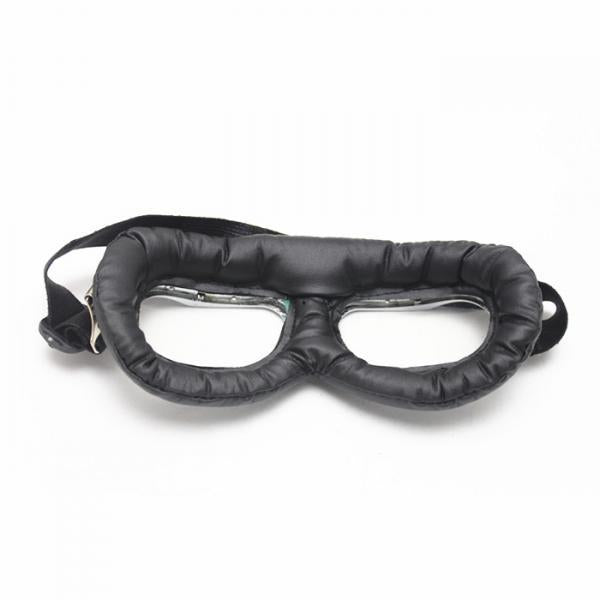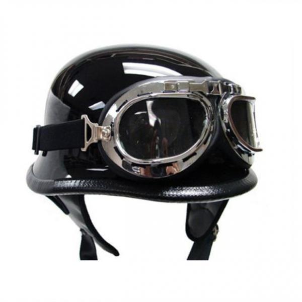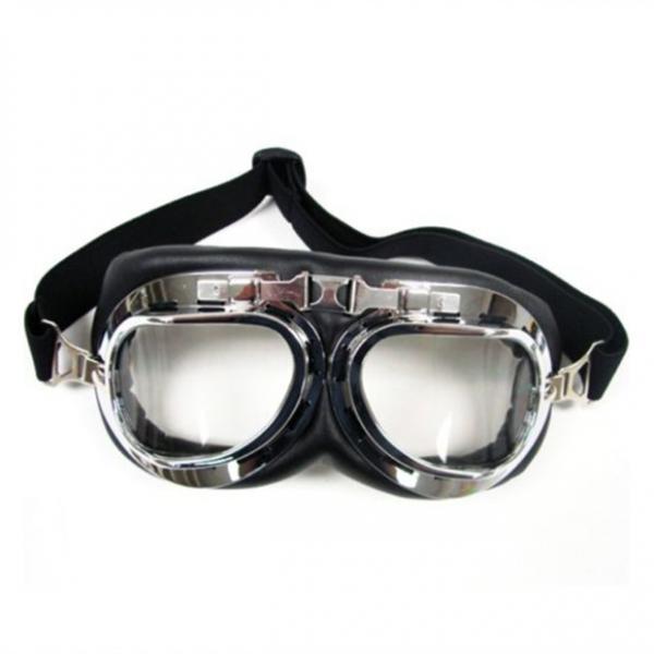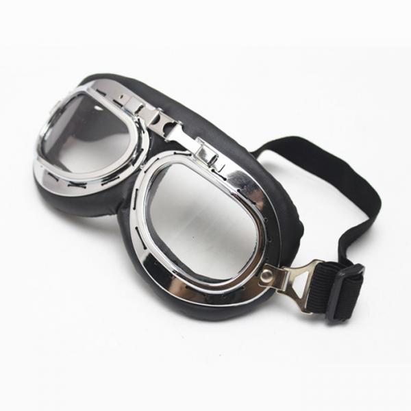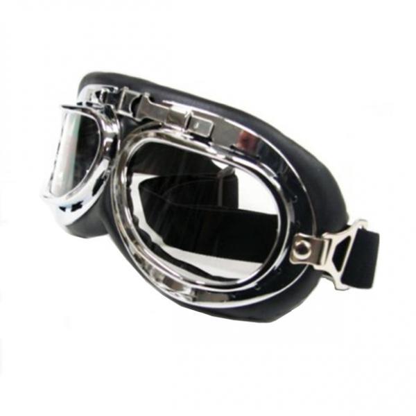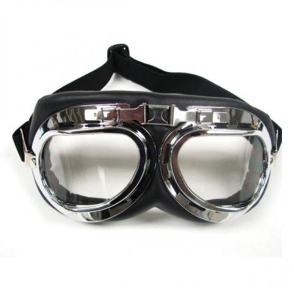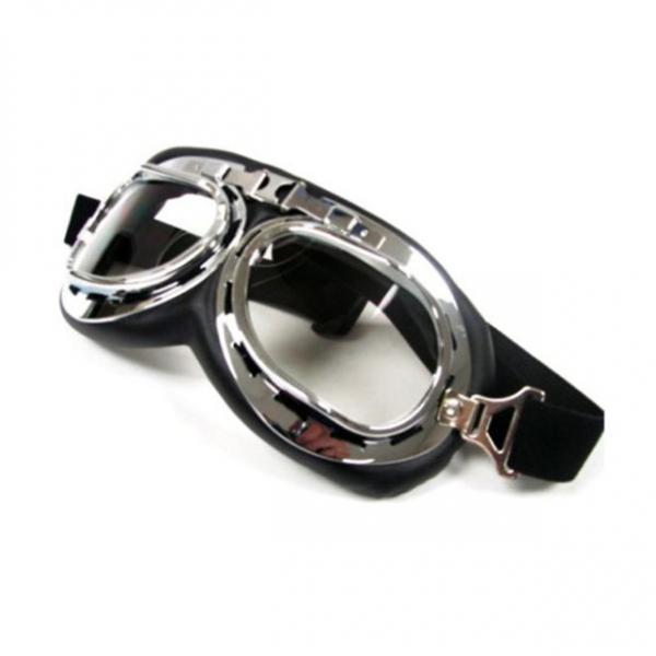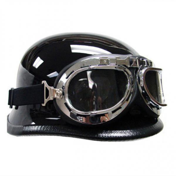 Half Helmet Ggoggles , Motorcycle Goggles Black Soft Padded Silver Frame with Driving Mirrored Lens Clear
