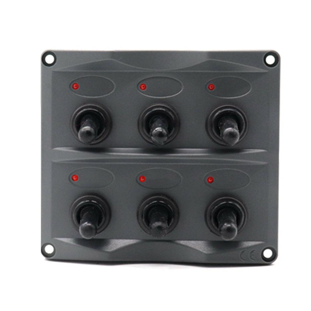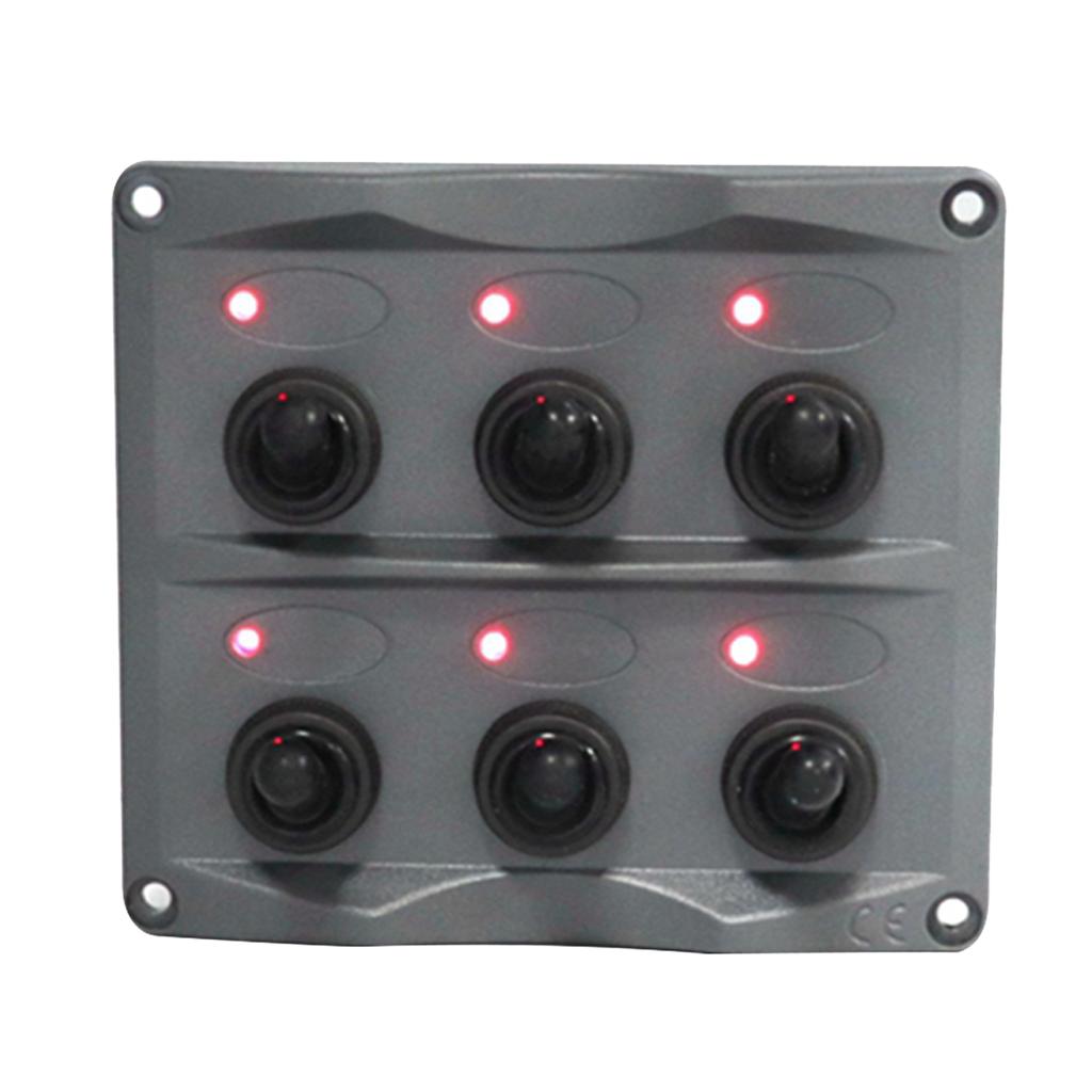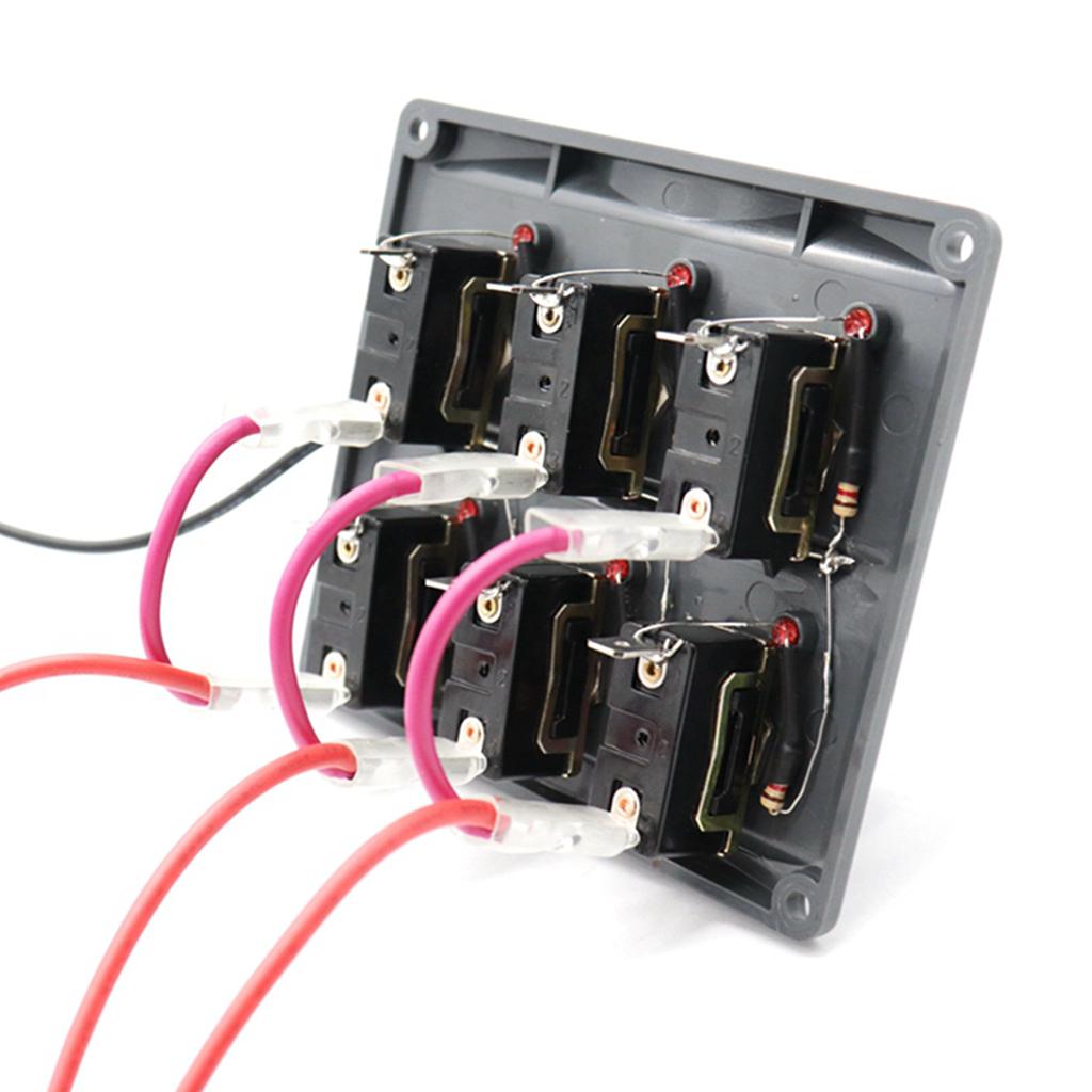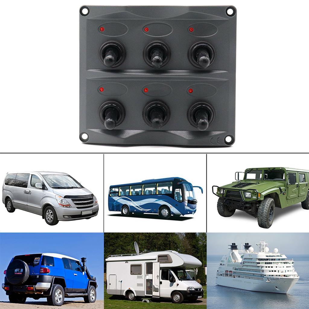 Marine Toggle Switch Black Panel Electric 6 Gang LED ON-OFF for Boat RV ATV