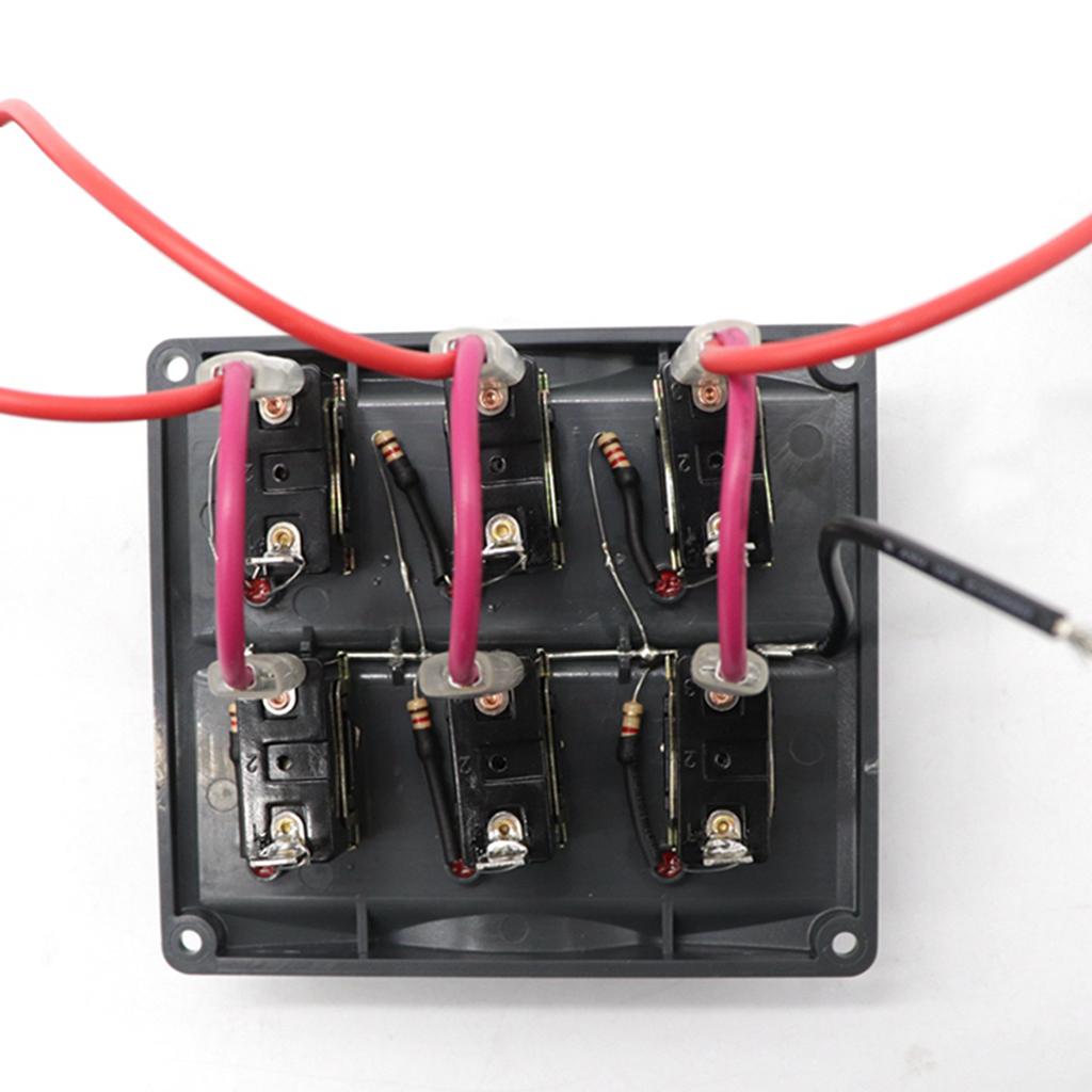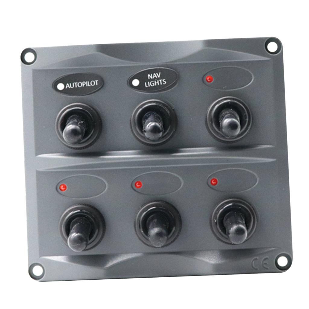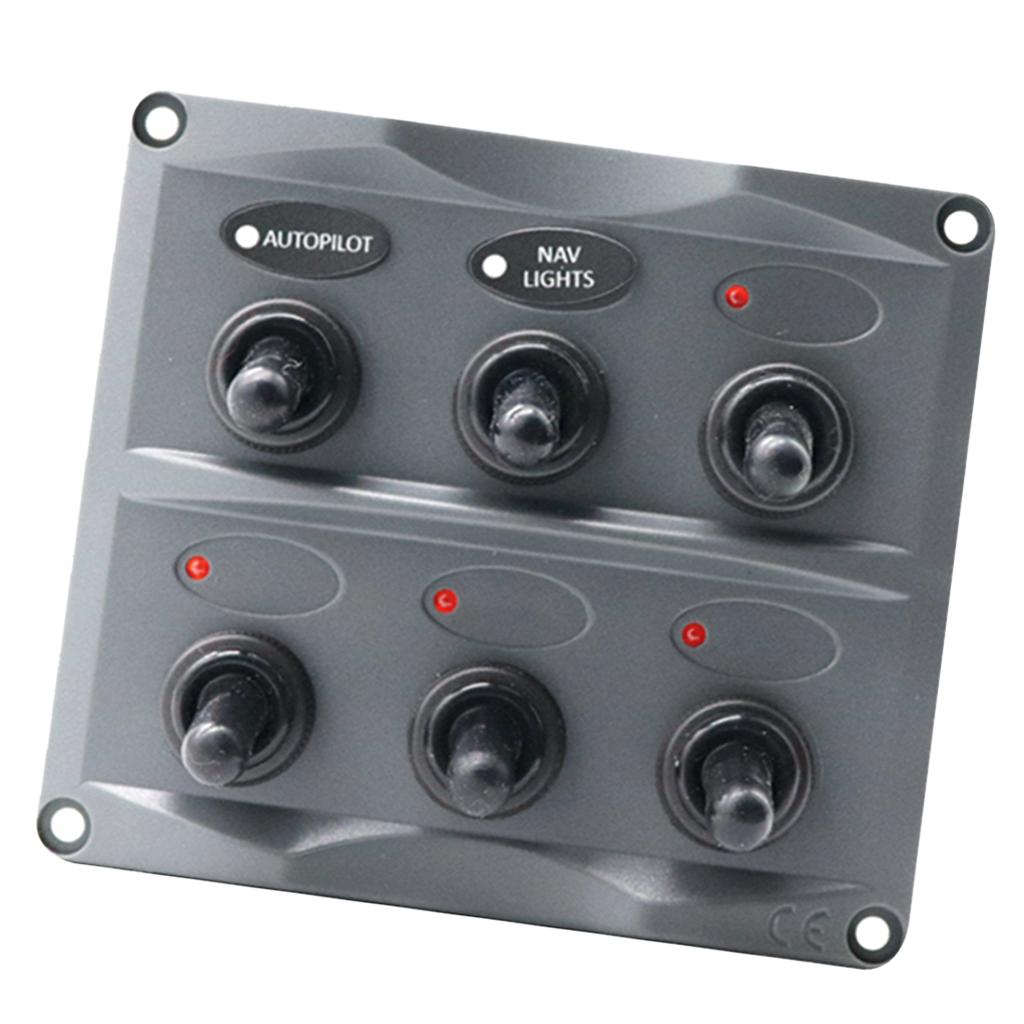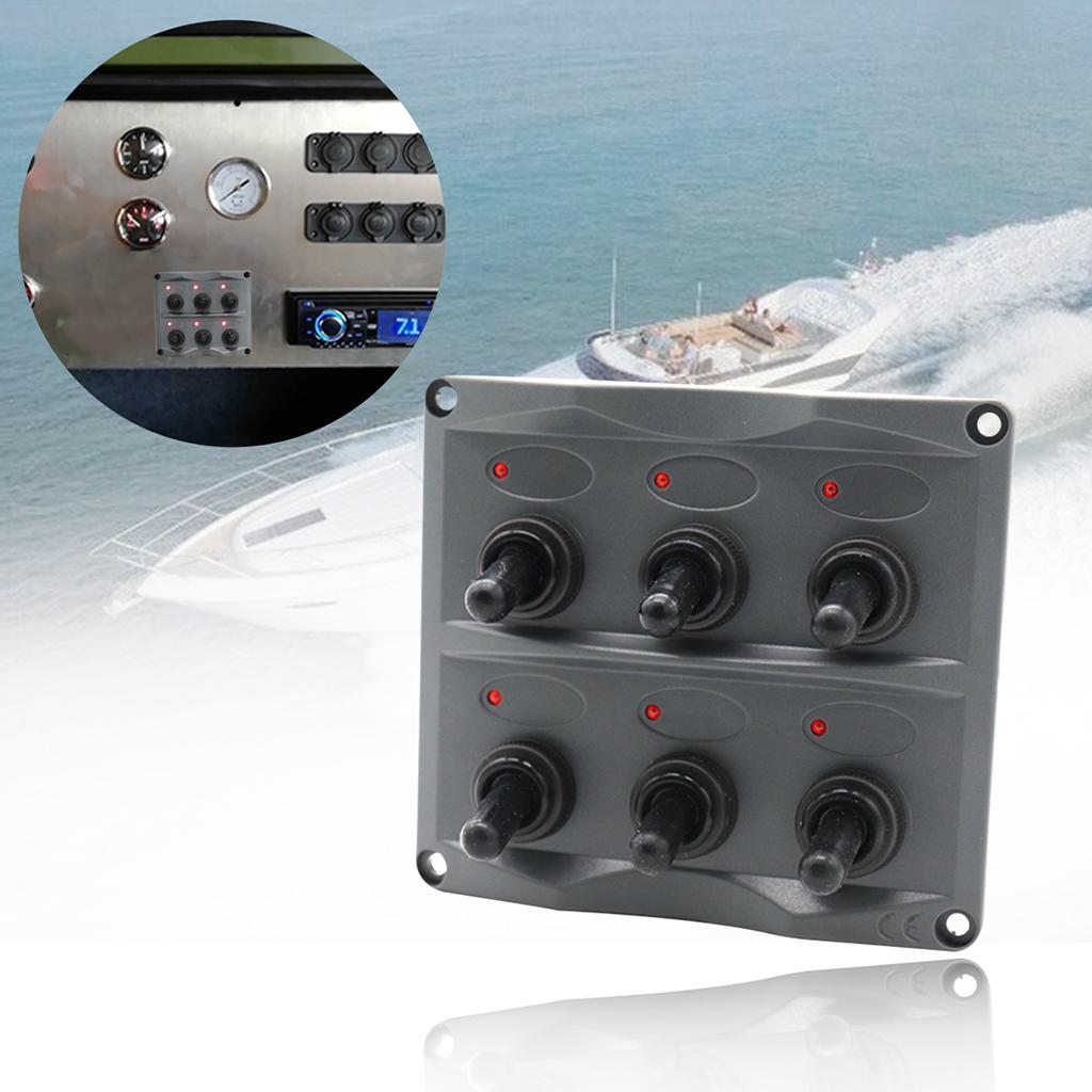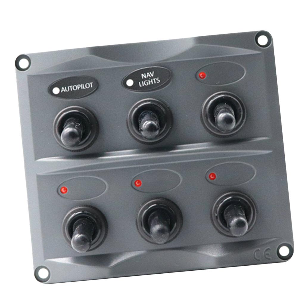 Marine Toggle Switch Black Panel Electric 6 Gang LED ON-OFF for Boat RV ATV