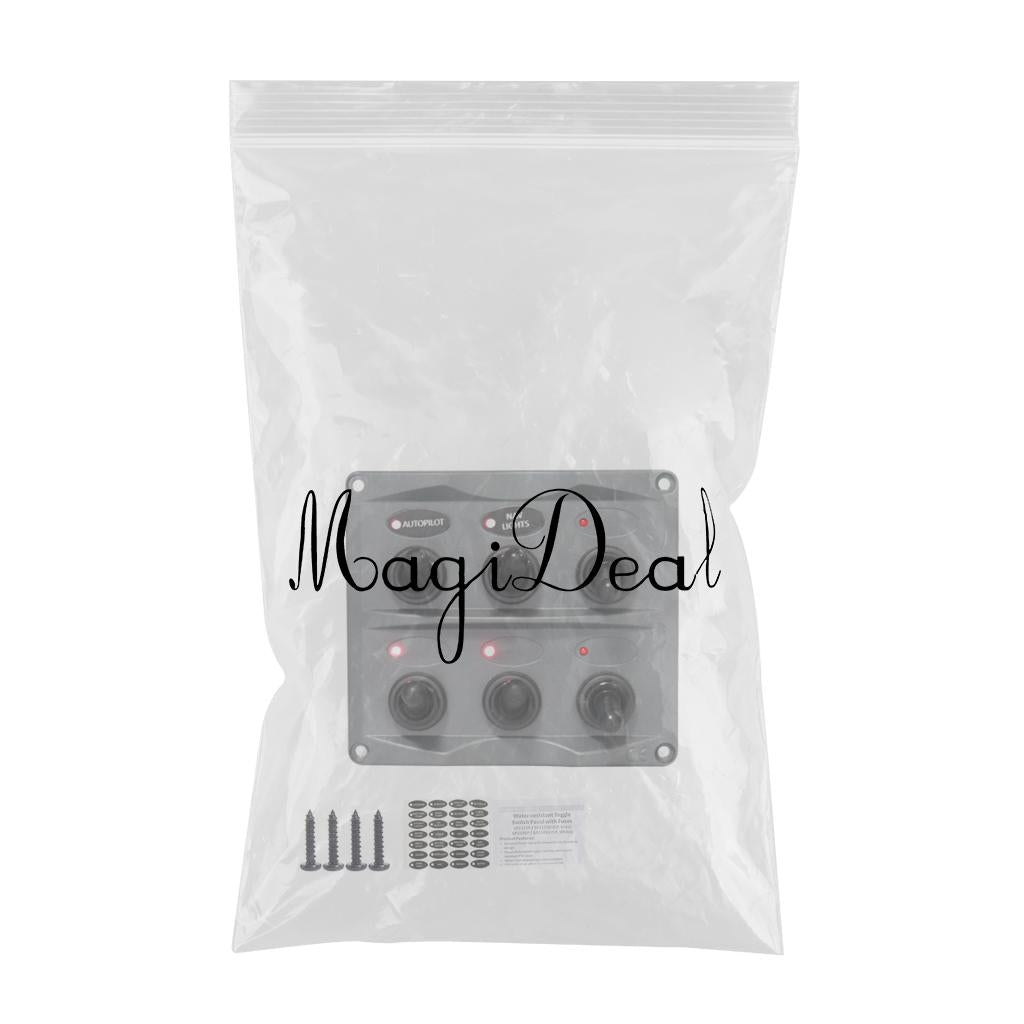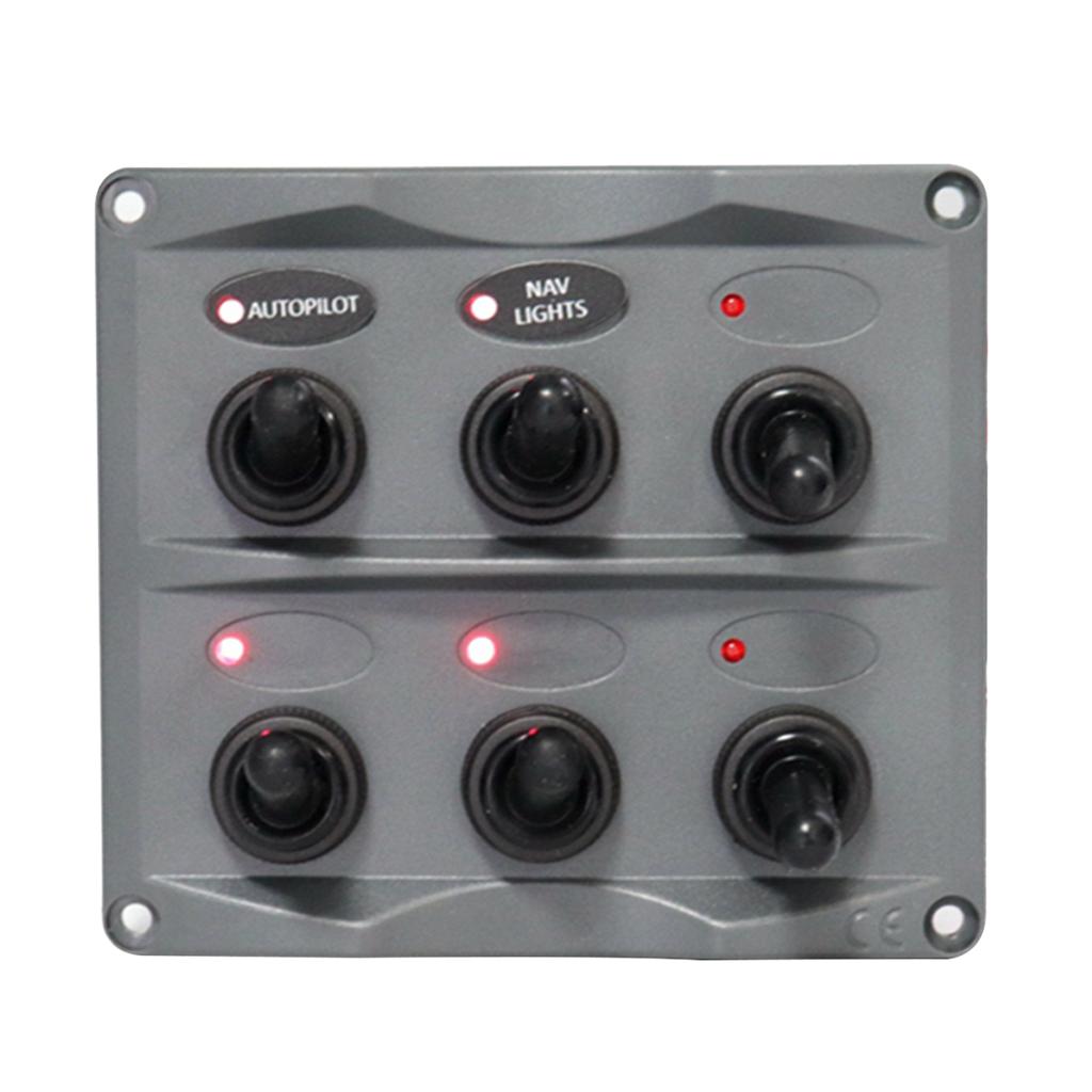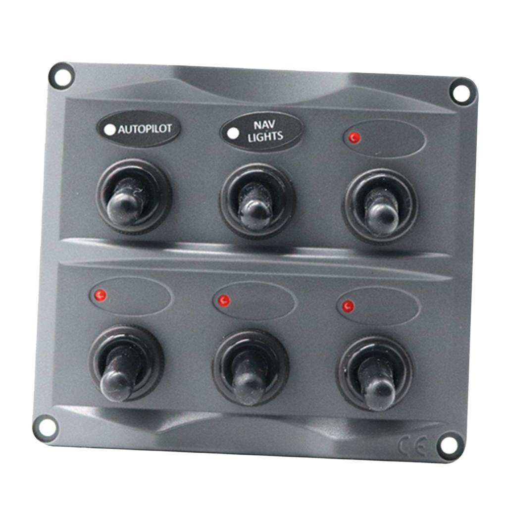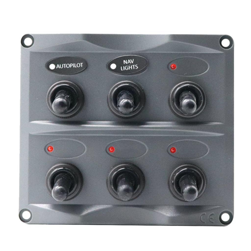 Marine Toggle Switch Black Panel Electric 6 Gang LED ON-OFF for Boat RV ATV