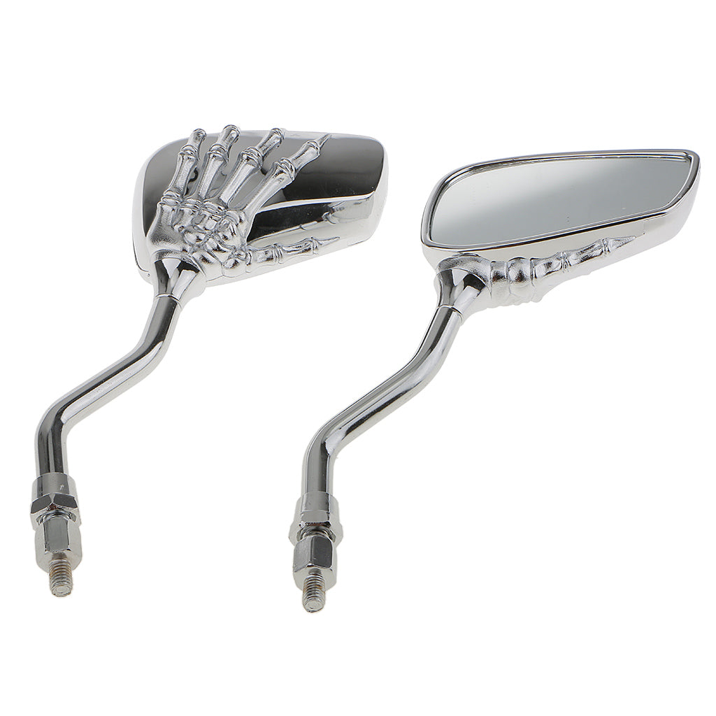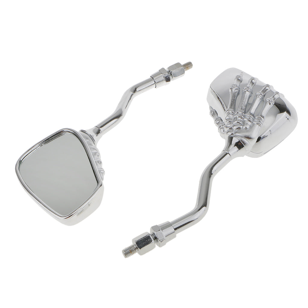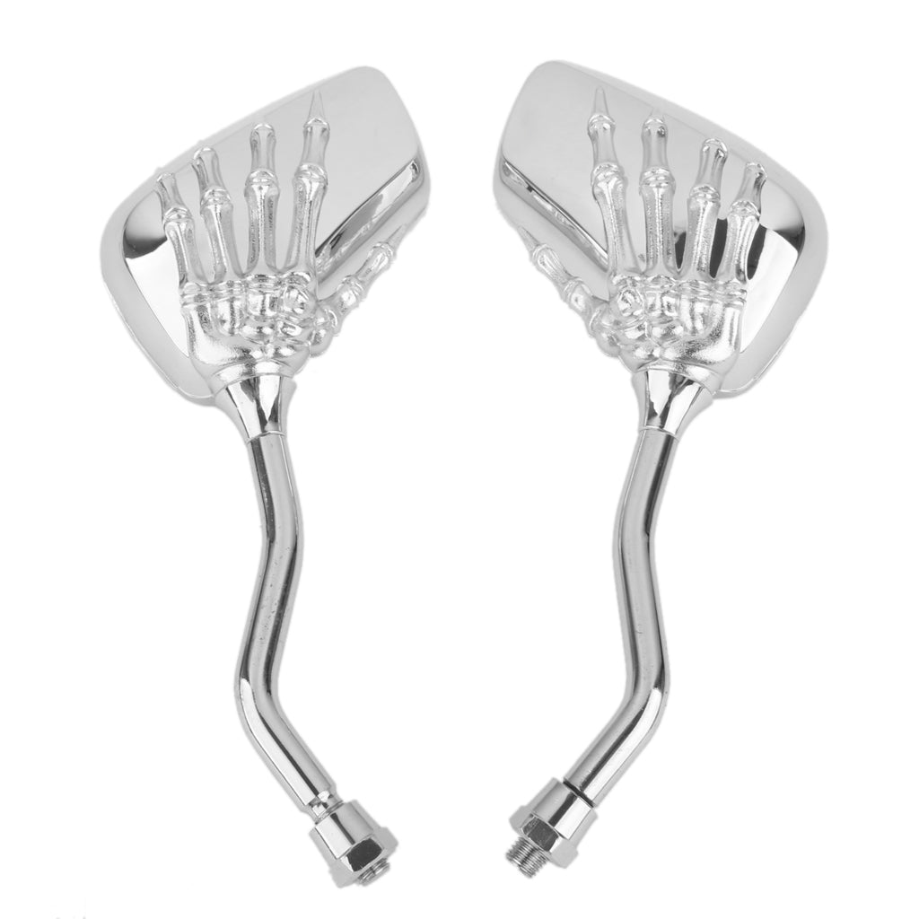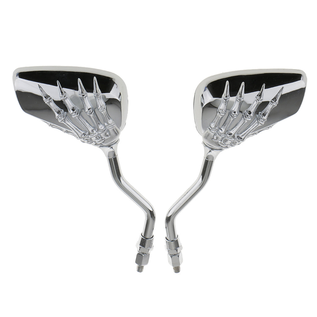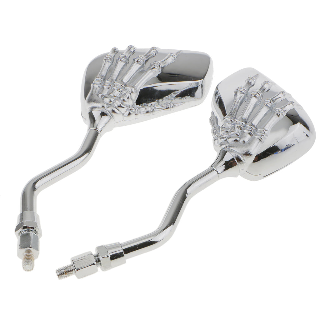 Motorcycle Bike Scooter Silver Skull Hand Rear View Side Mirrors 8mm 10mm
