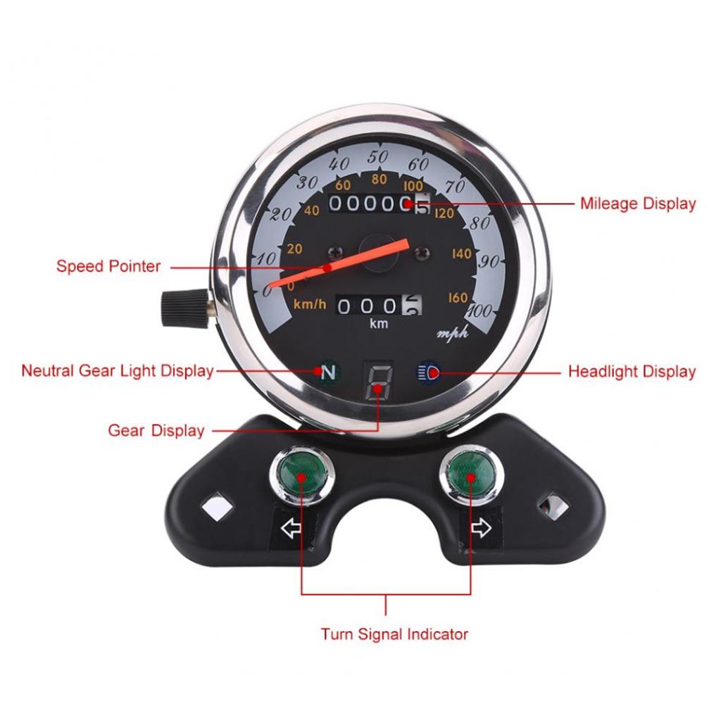 Integrated with mileage display, gear display, neutral gear light display, turn signal indicator and headlight display.