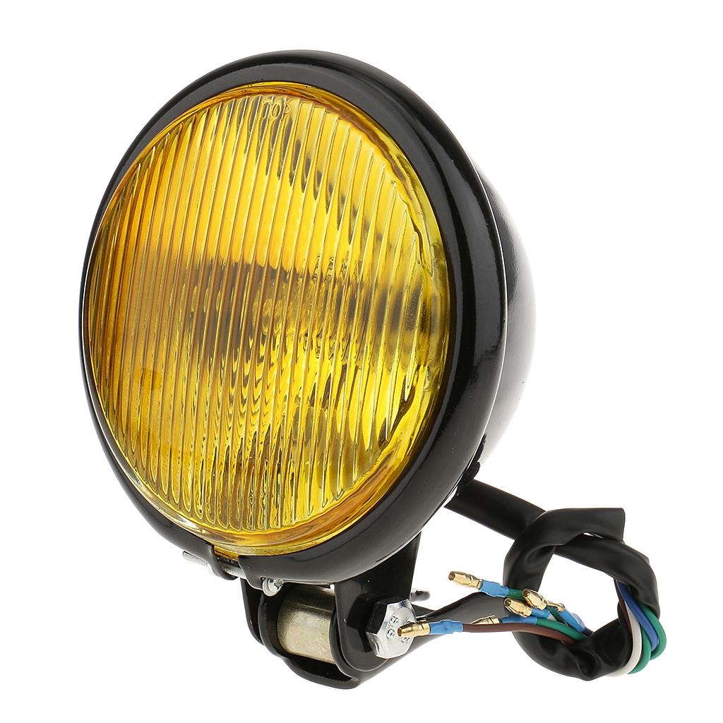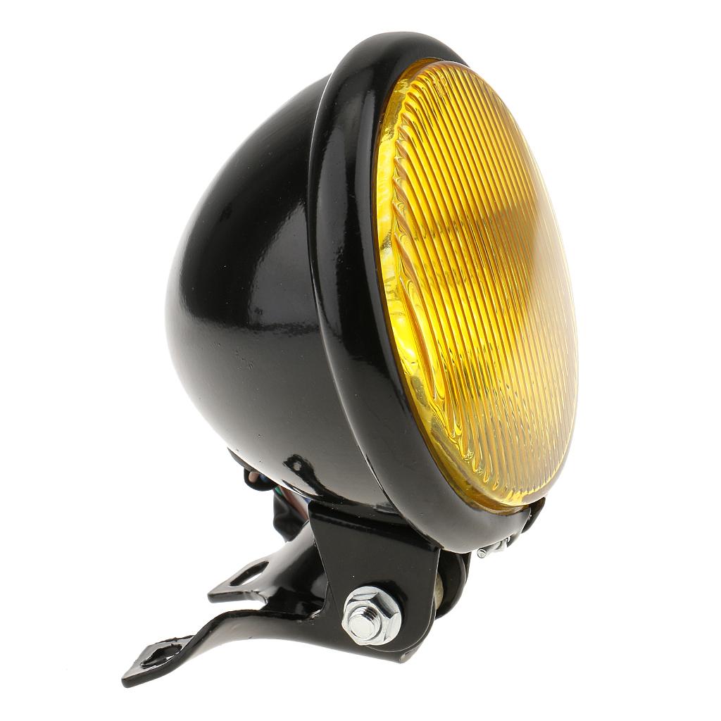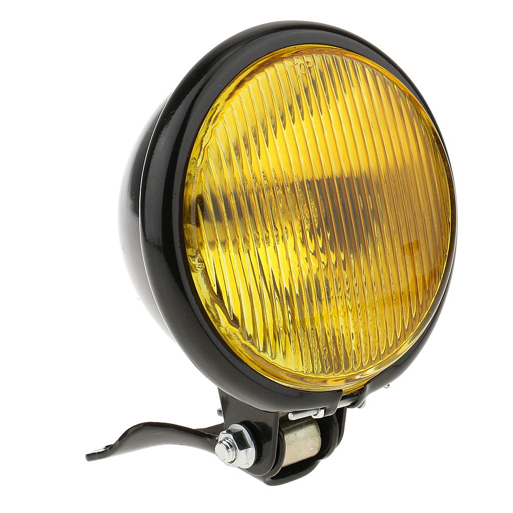 Retro 5" Motorcycle Amber Front Headlight w/ Yellow Glass for Harley Black