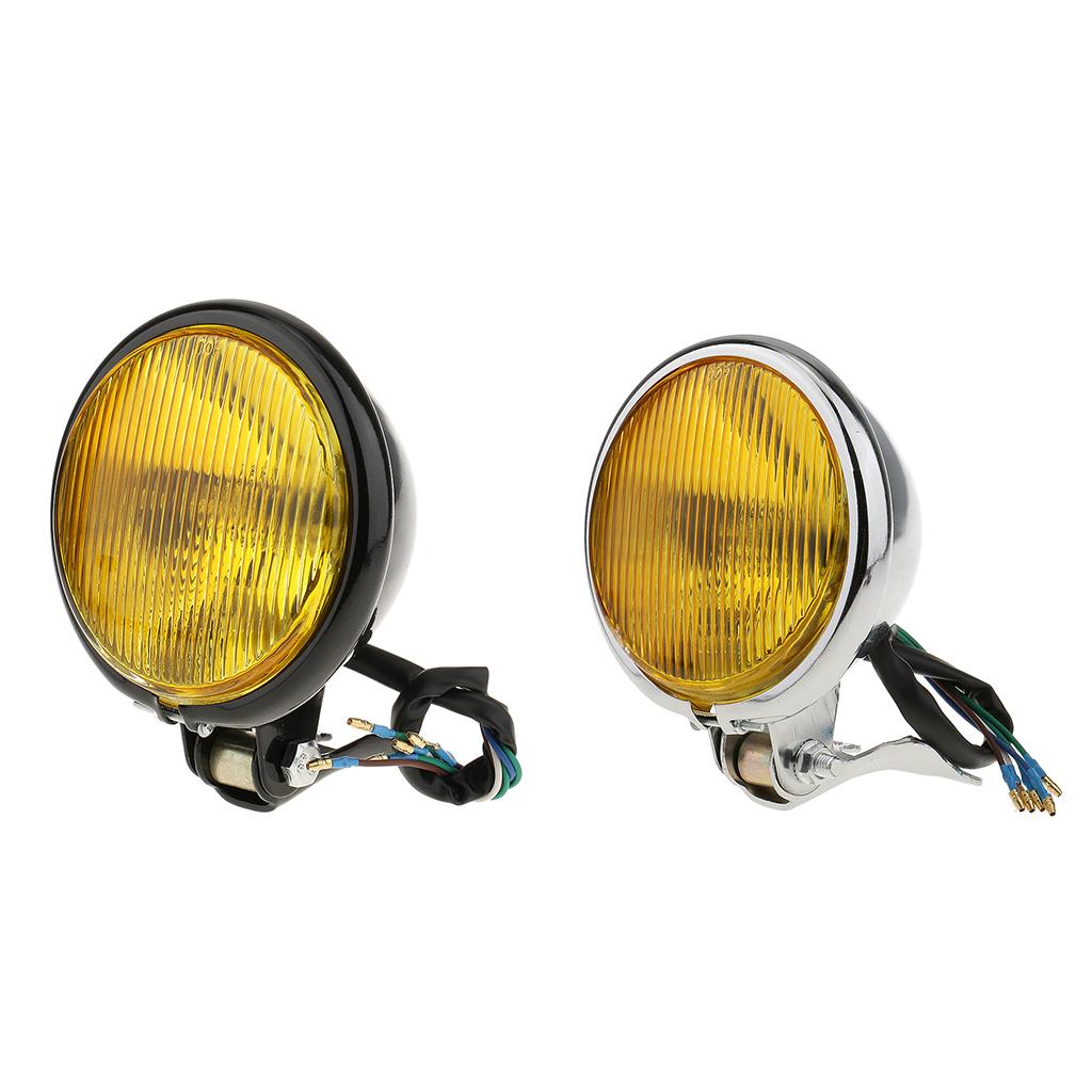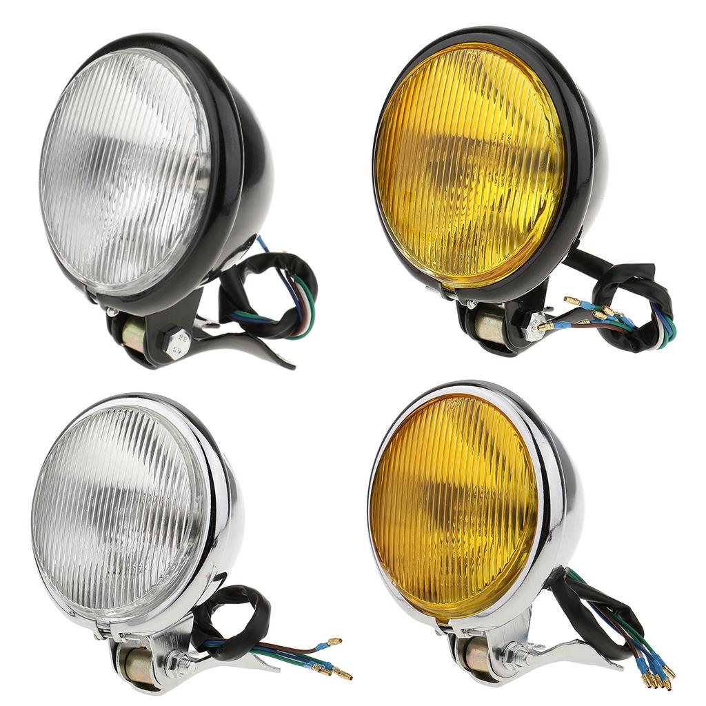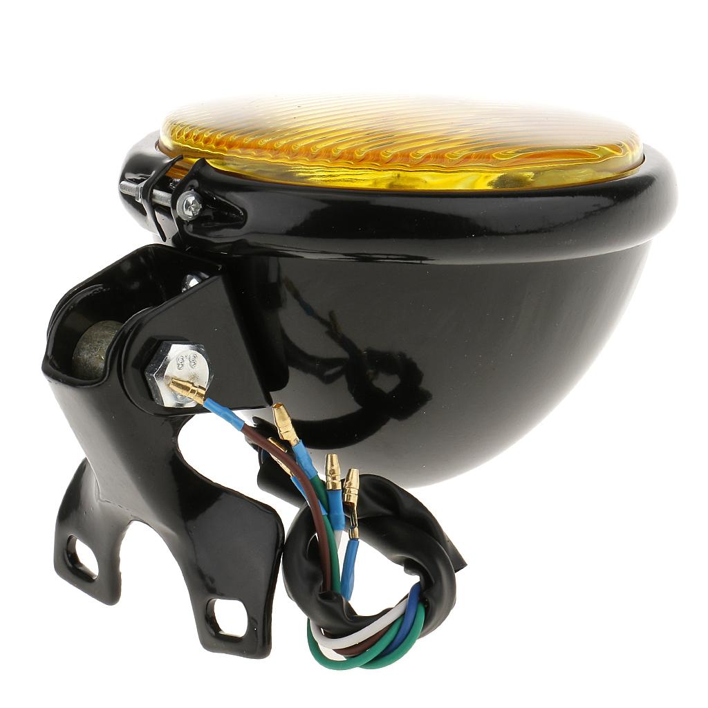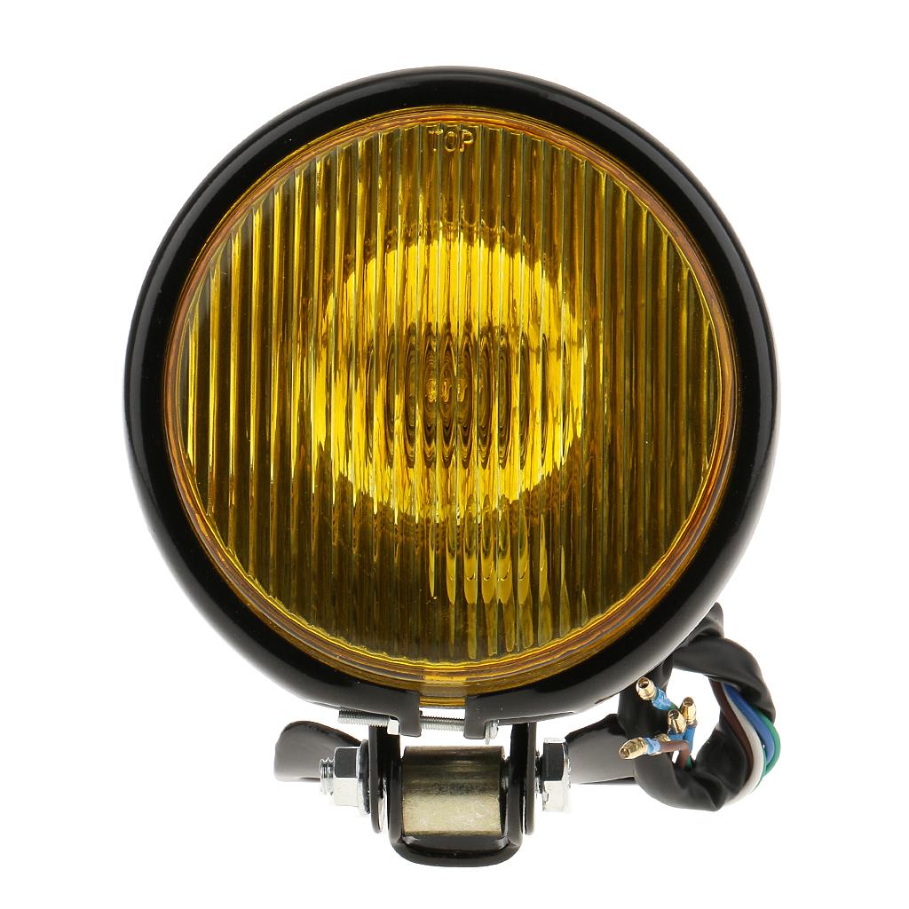 Retro 5" Motorcycle Amber Front Headlight w/ Yellow Glass for Harley Black