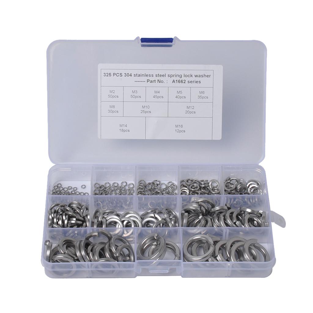 1 Set of Spring Coil Washers(50 Pieces M2/M3,45 Pieces M4,40 Pieces M5,35 Pieces M6,30 Piececs M8,25 Pieces M10,20 Pieces M12,18 PiecesM14,12 Pieces M16)
