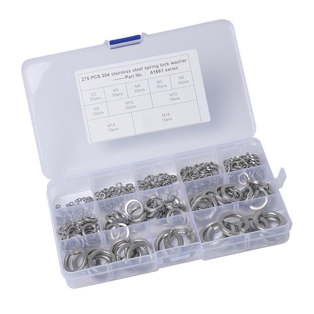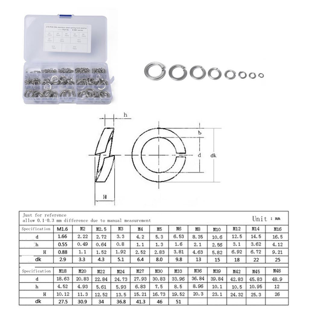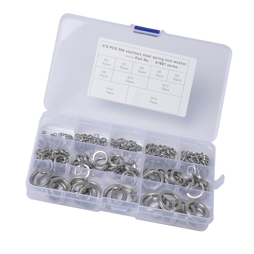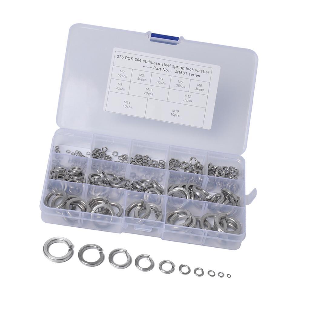 1 Set of Spring Coil Washers(50 Pieces M2/M3,35 Pieces M4/M5,30 Pieces M6,20 Piececs M8/M10,15 Pieces M12,10 PiecesM14/ M16)