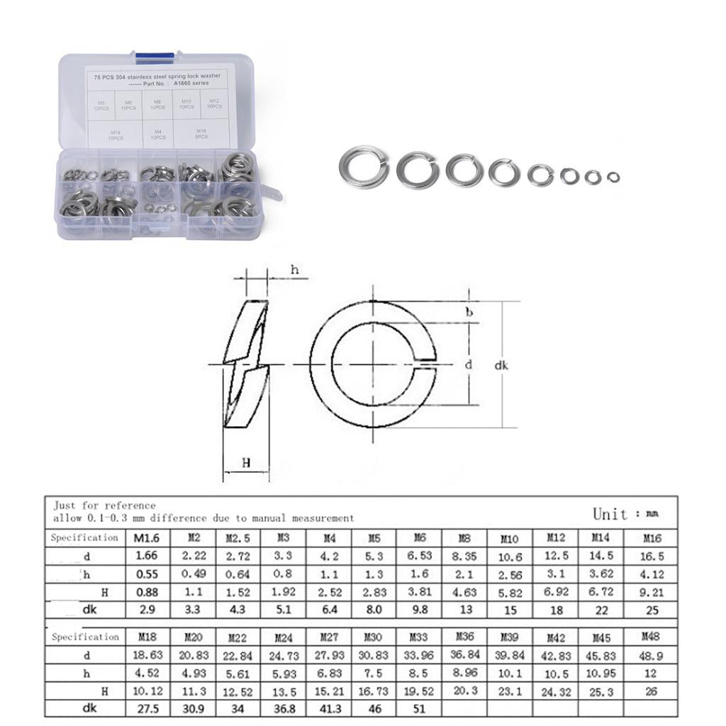 1 Set of Spring Coil Washers(10 Pieces M4/M5/M6/M8/M10/M12/M14,5 Pieces M16)