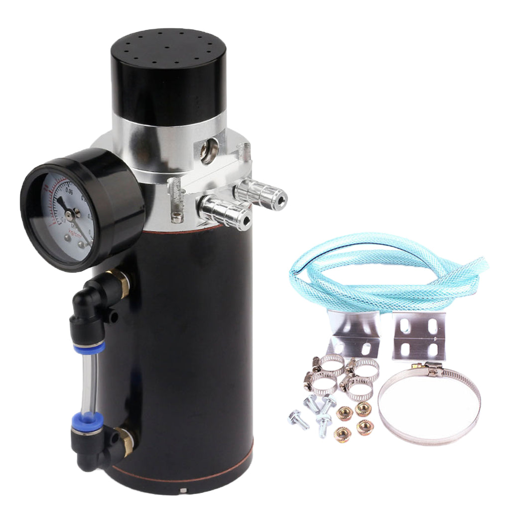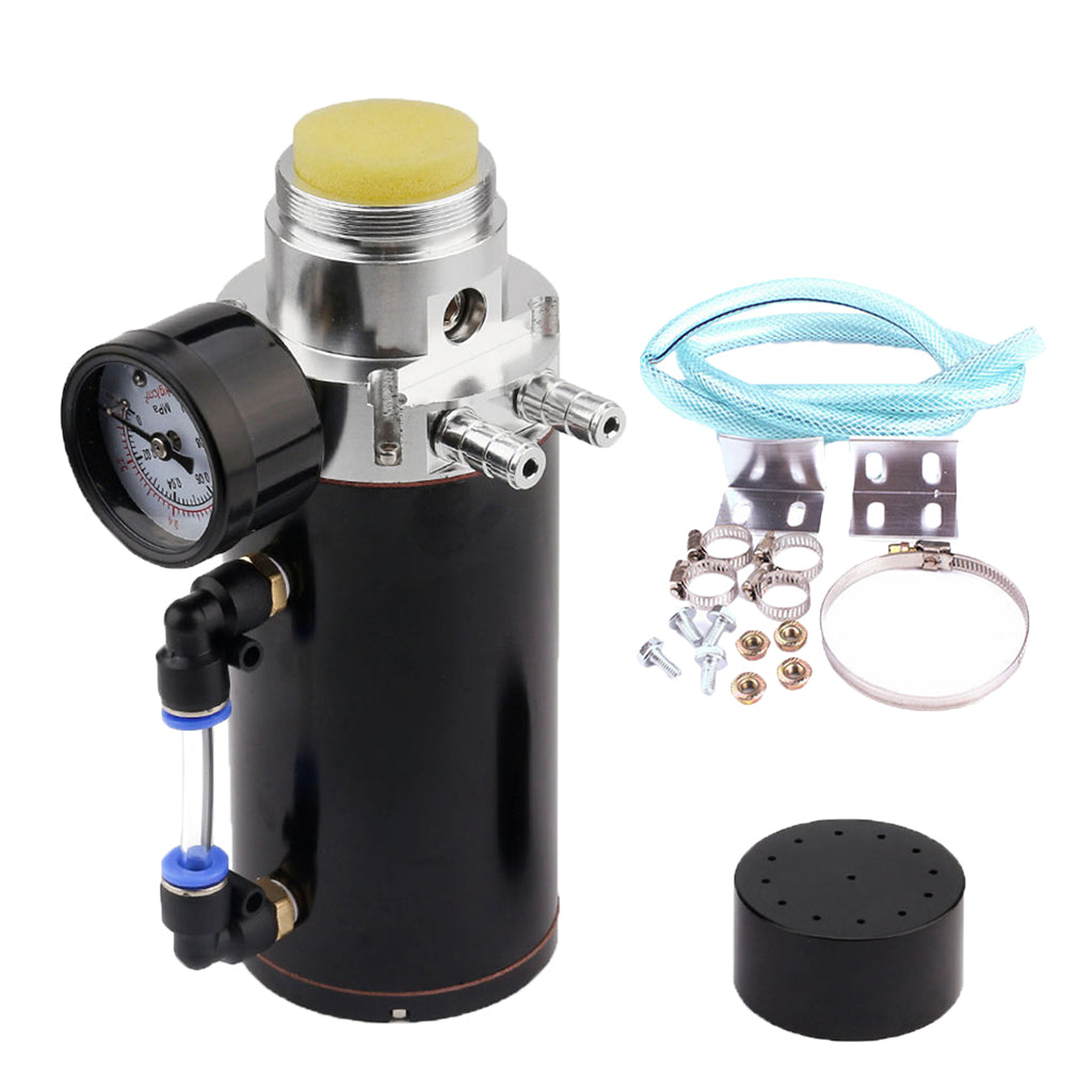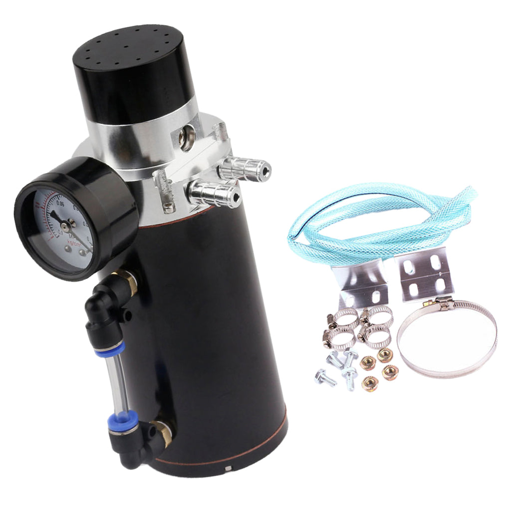 Universal Oil Catch Can Tank Overflow with Breather Vacuum Gauge Black