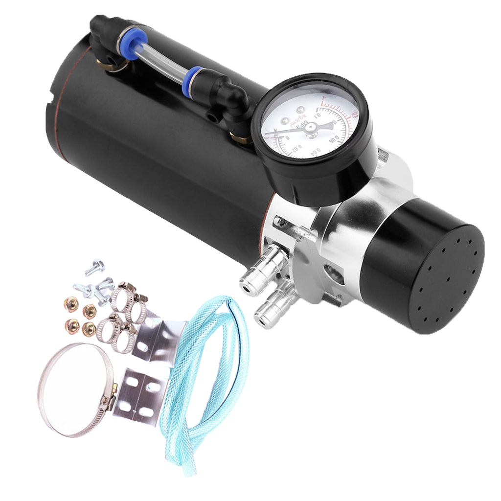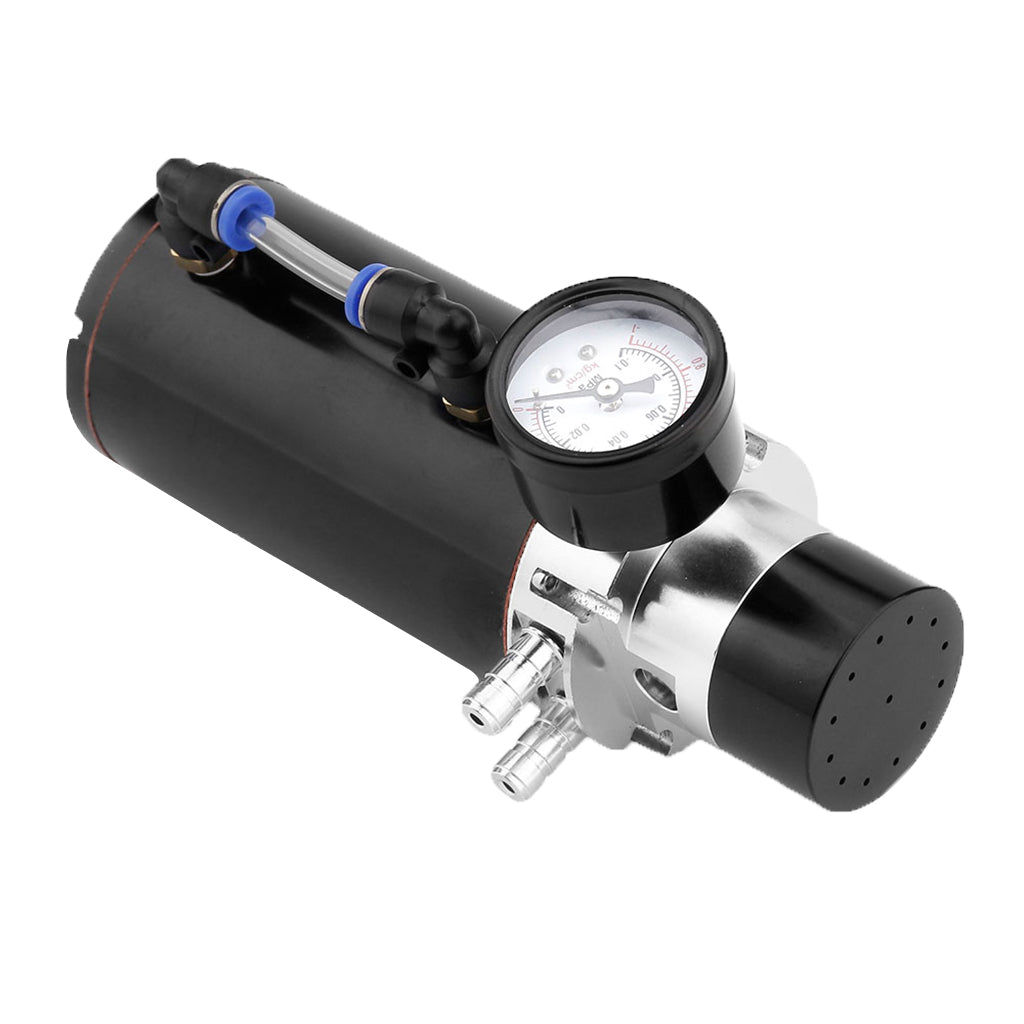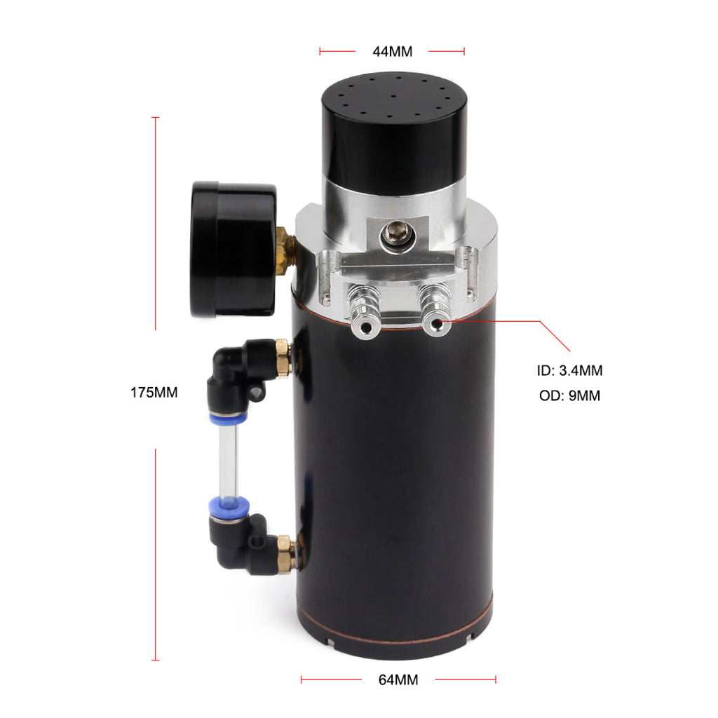 Universal Oil Catch Can Tank Overflow with Breather Vacuum Gauge Black