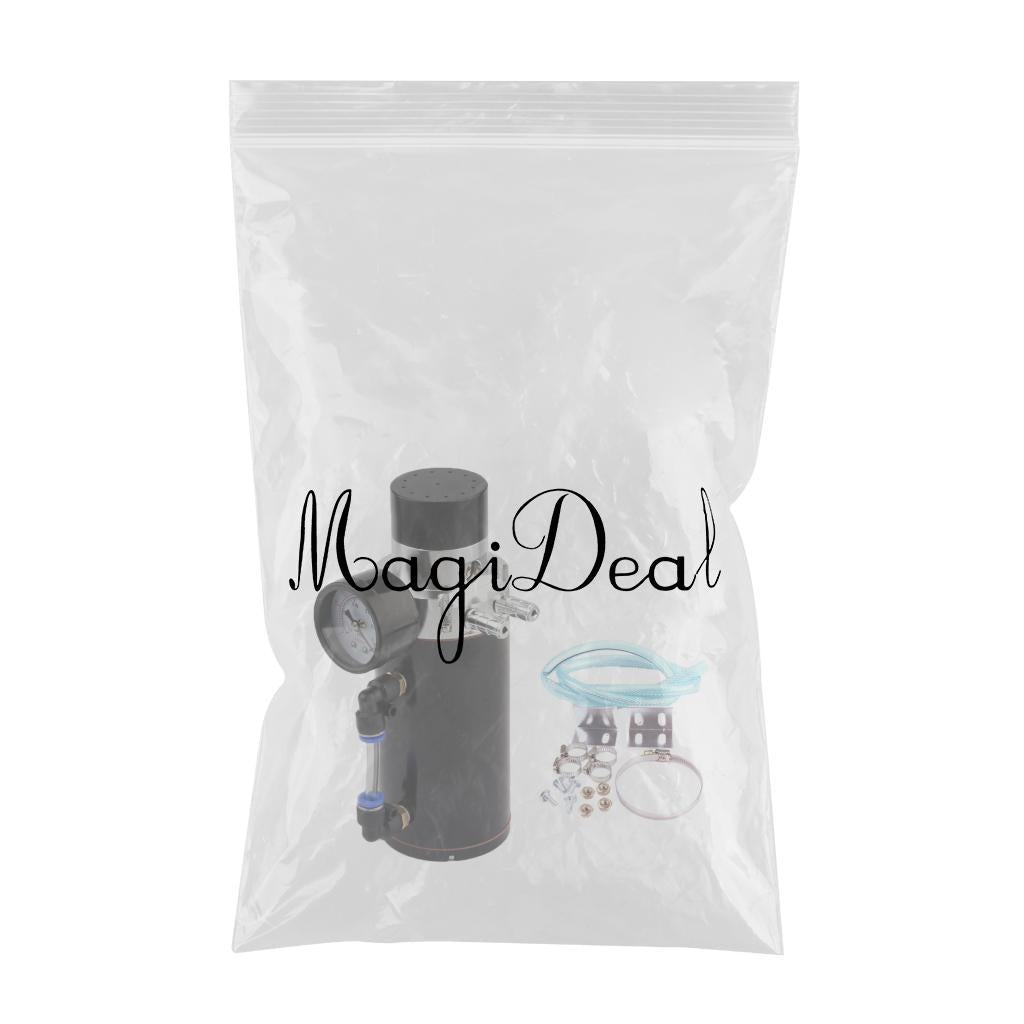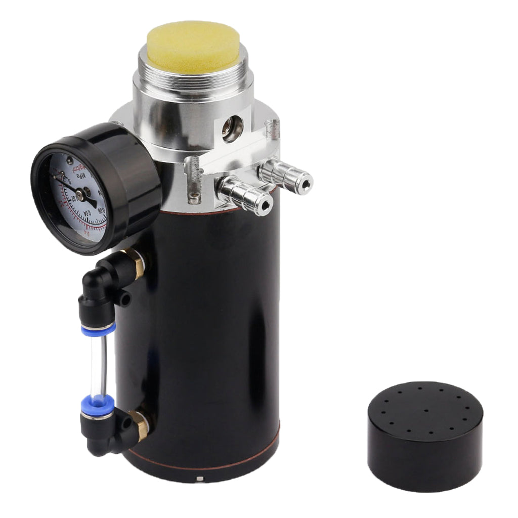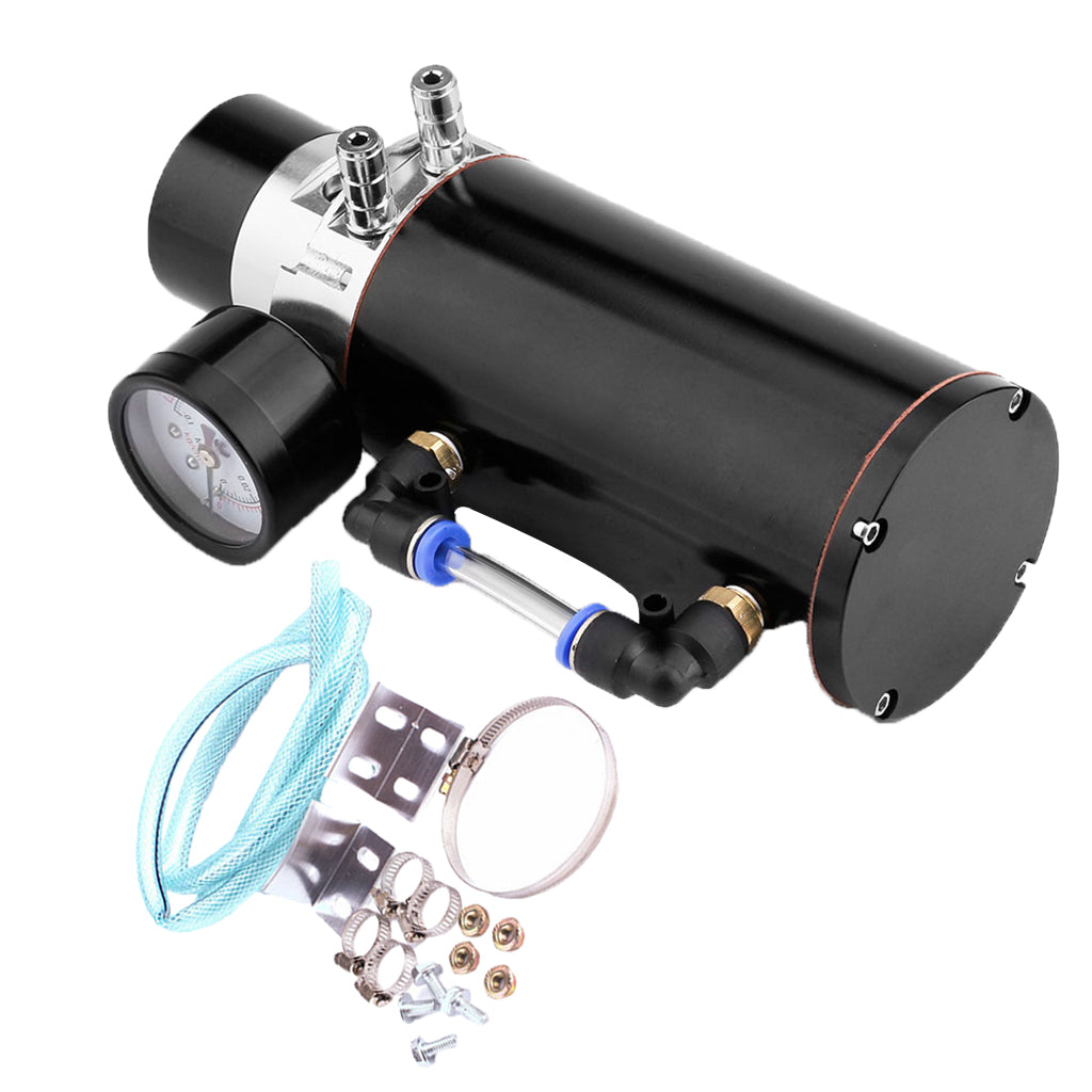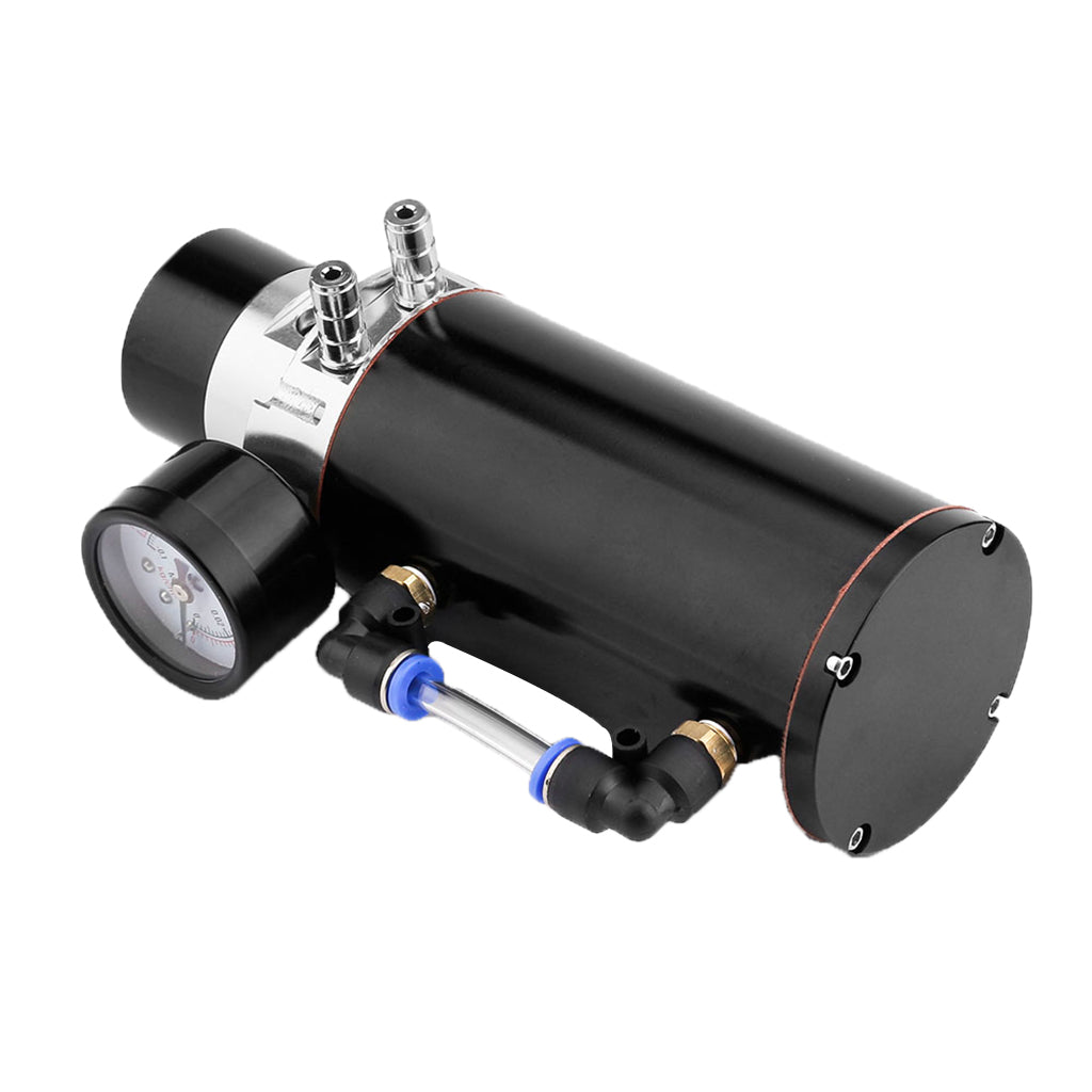 Universal Aluminum Oil Reservoir Catch Can Tank + Internal Breather Foam + Air Flow Gauge