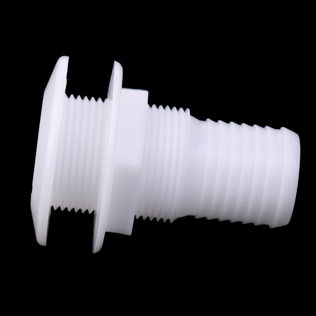 White Plastic Broad Flange Thru-Hull Bilge Pump and Aerator Fitting for 1 1/2" Hose - Marine/Boat/Yacht