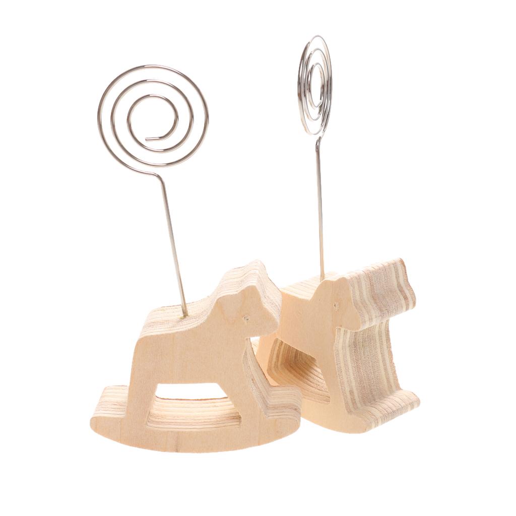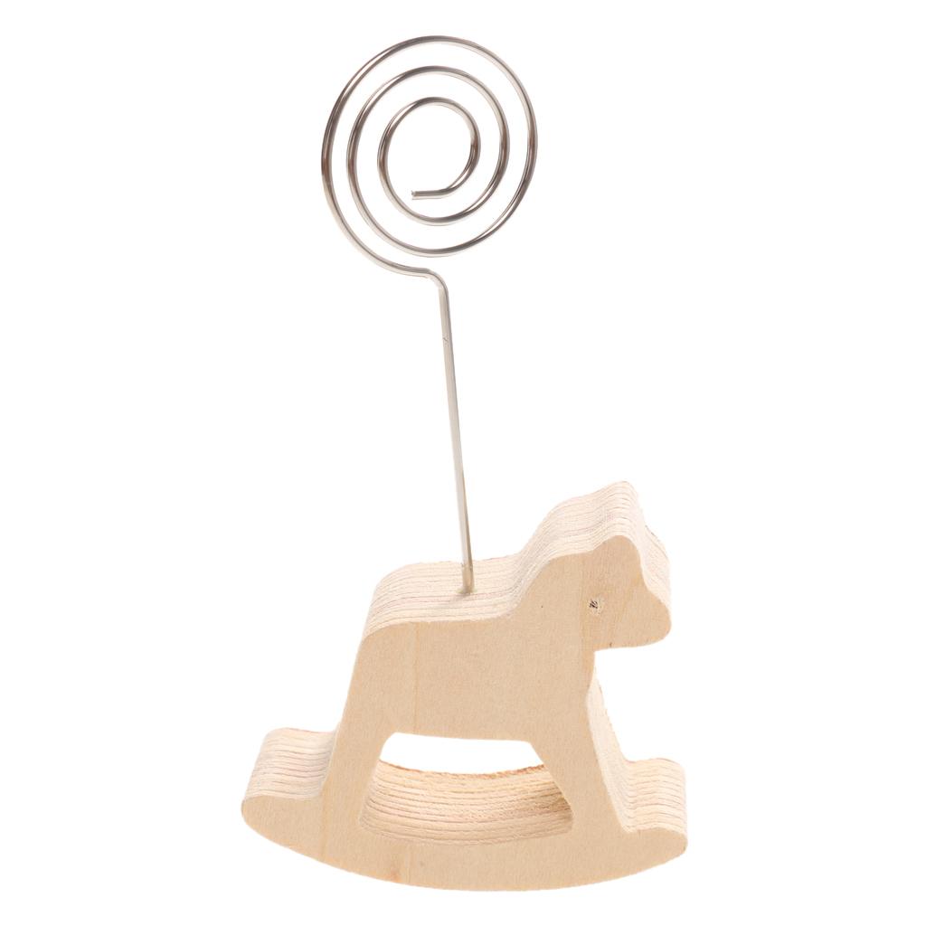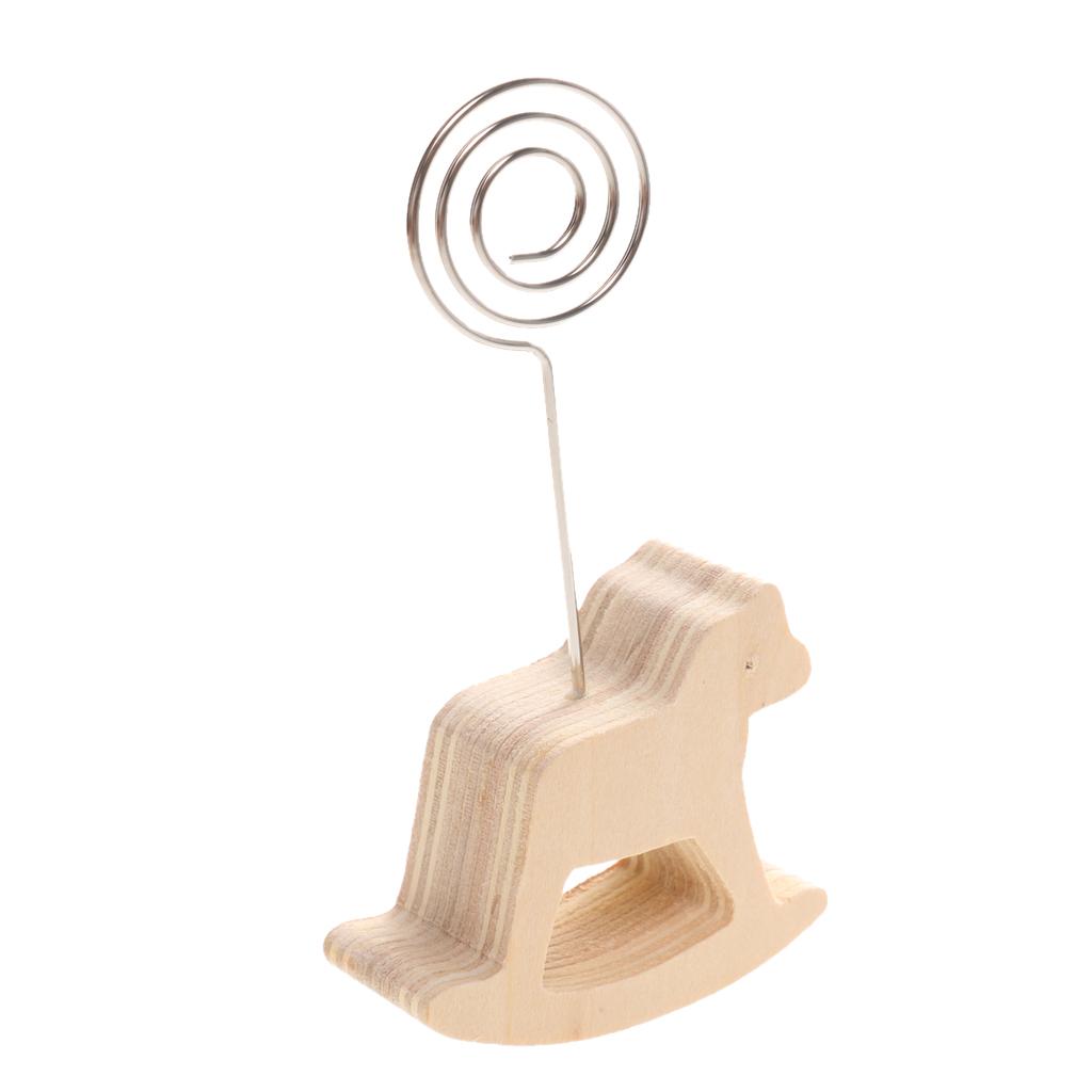 10pcs Wooden Horse Memo Holder Notes Cards Wire Clip Photo Display