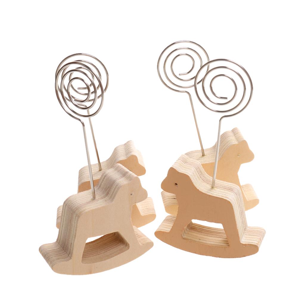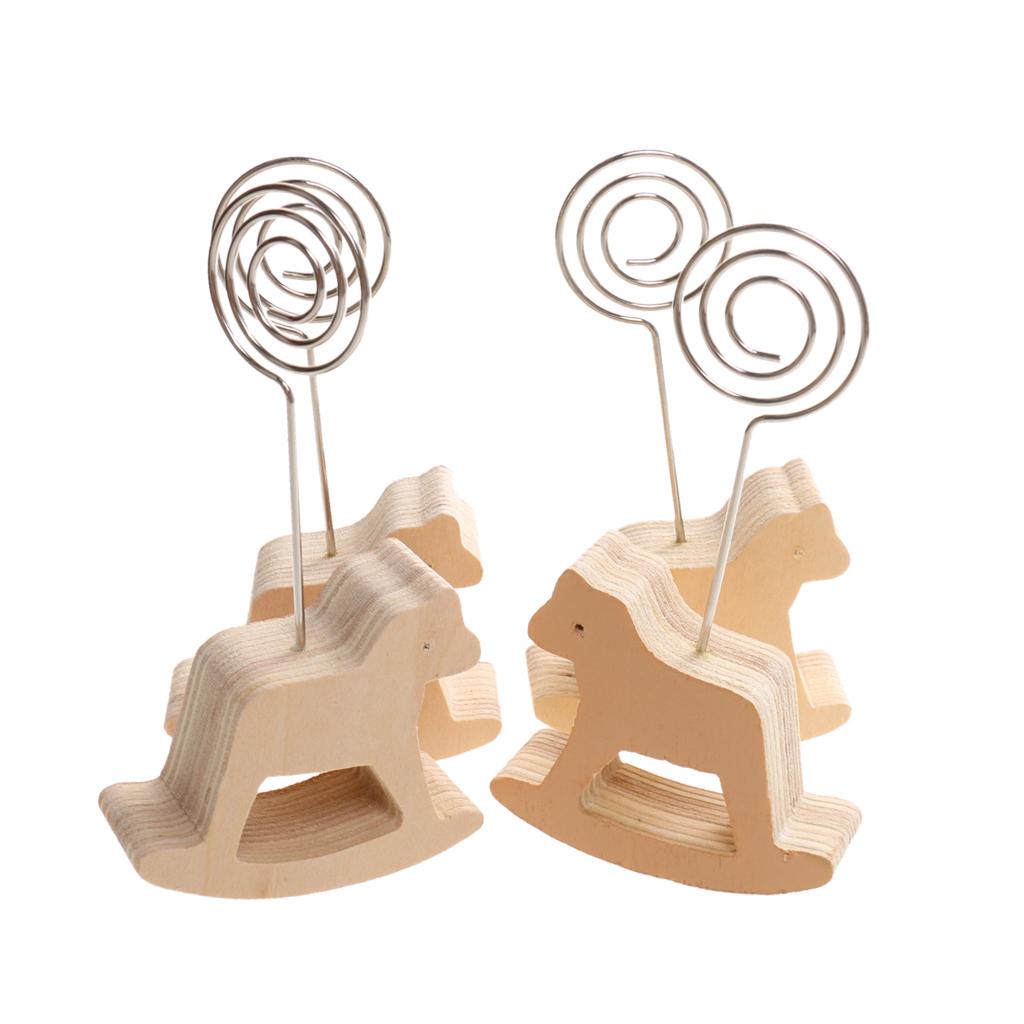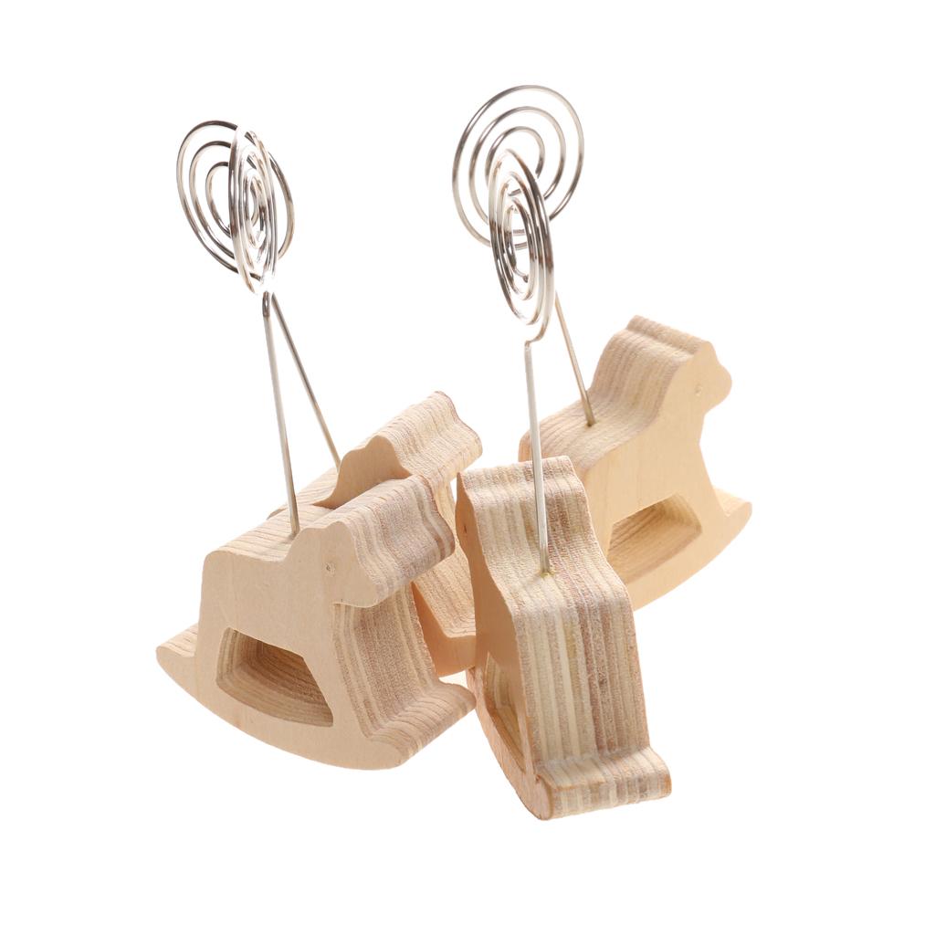 10pcs Wooden Horse Memo Holder Notes Cards Wire Clip Photo Display