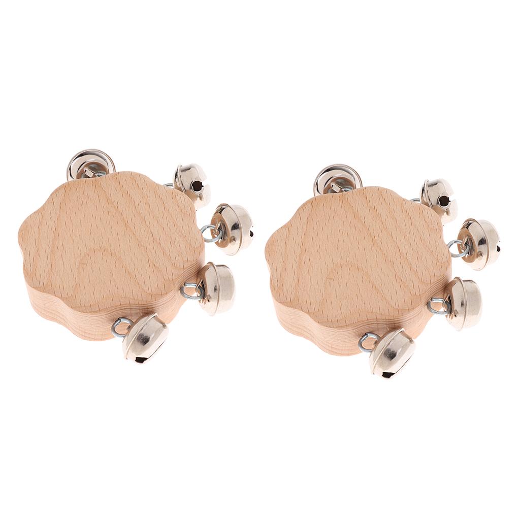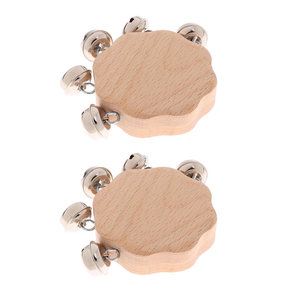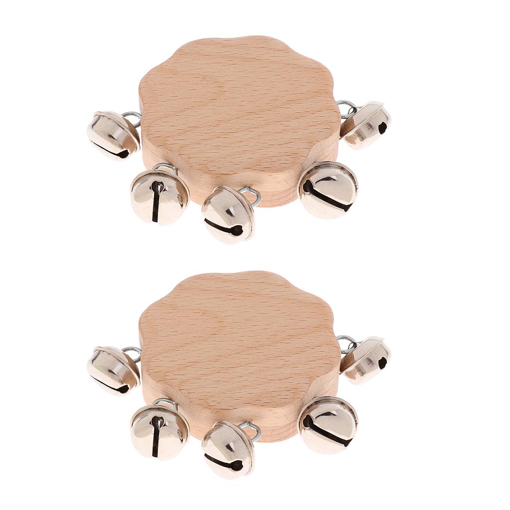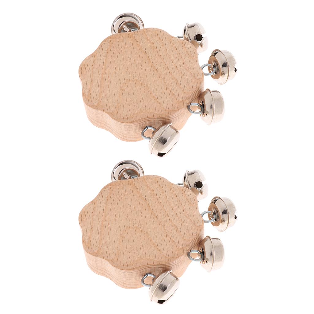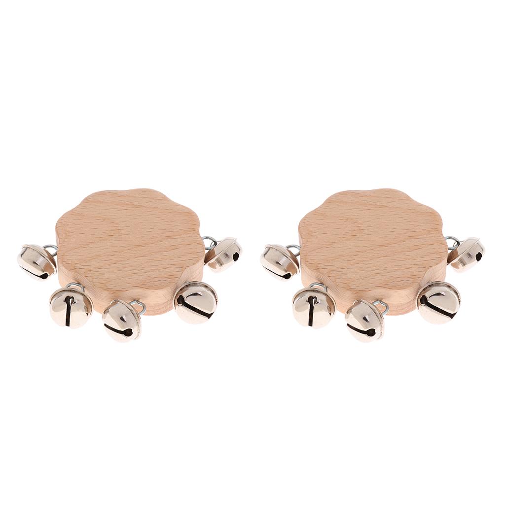 2pcs Solid Wood Kids Baby Hand Shake Bells Educational Grasping Rattle Toys