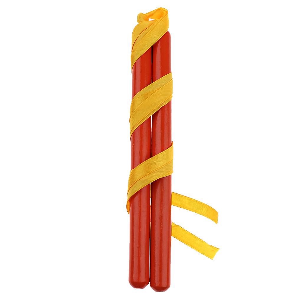 2Pcs Rhythm Sticks with Coloured Ribbon Percussion for Children Gift Orange